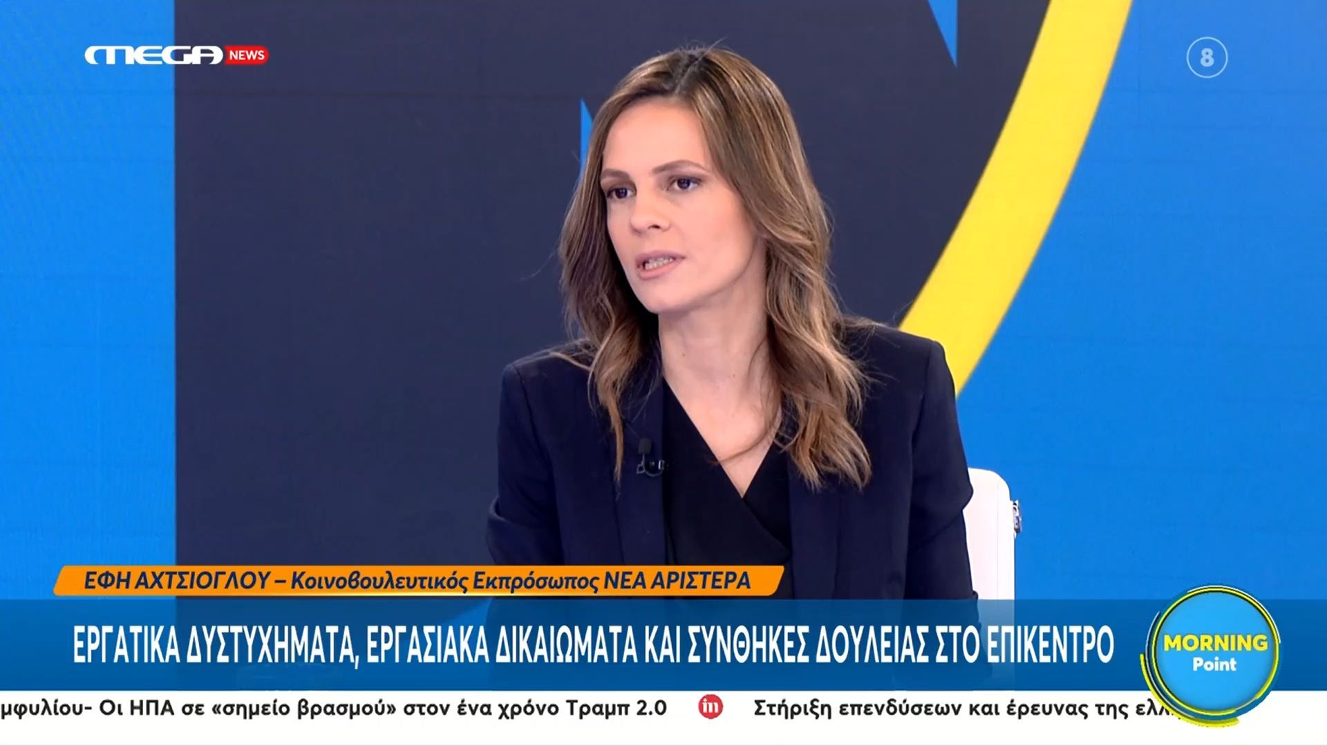 Η κοινοβουλευτική εκπρόσωπος της Νέας Αριστεράς, Ε. Αχτσιόγλου, αναφέρθηκε στην υποστελέχωση της επιθεώρησης εργασίας, τονίζοντας ότι αυτή έχει σοβαρές συνέπειες για την ασφάλεια των εργαζομένων. Η δήλωσή της έγινε στο πλαίσιο συζήτησης για το πρόσφατο εργατικό δυστύχημα σε εργοστάσιο τροφίμων στα Τρίκαλα, το οποίο η κυβέρνηση φέρει ευθύνες.