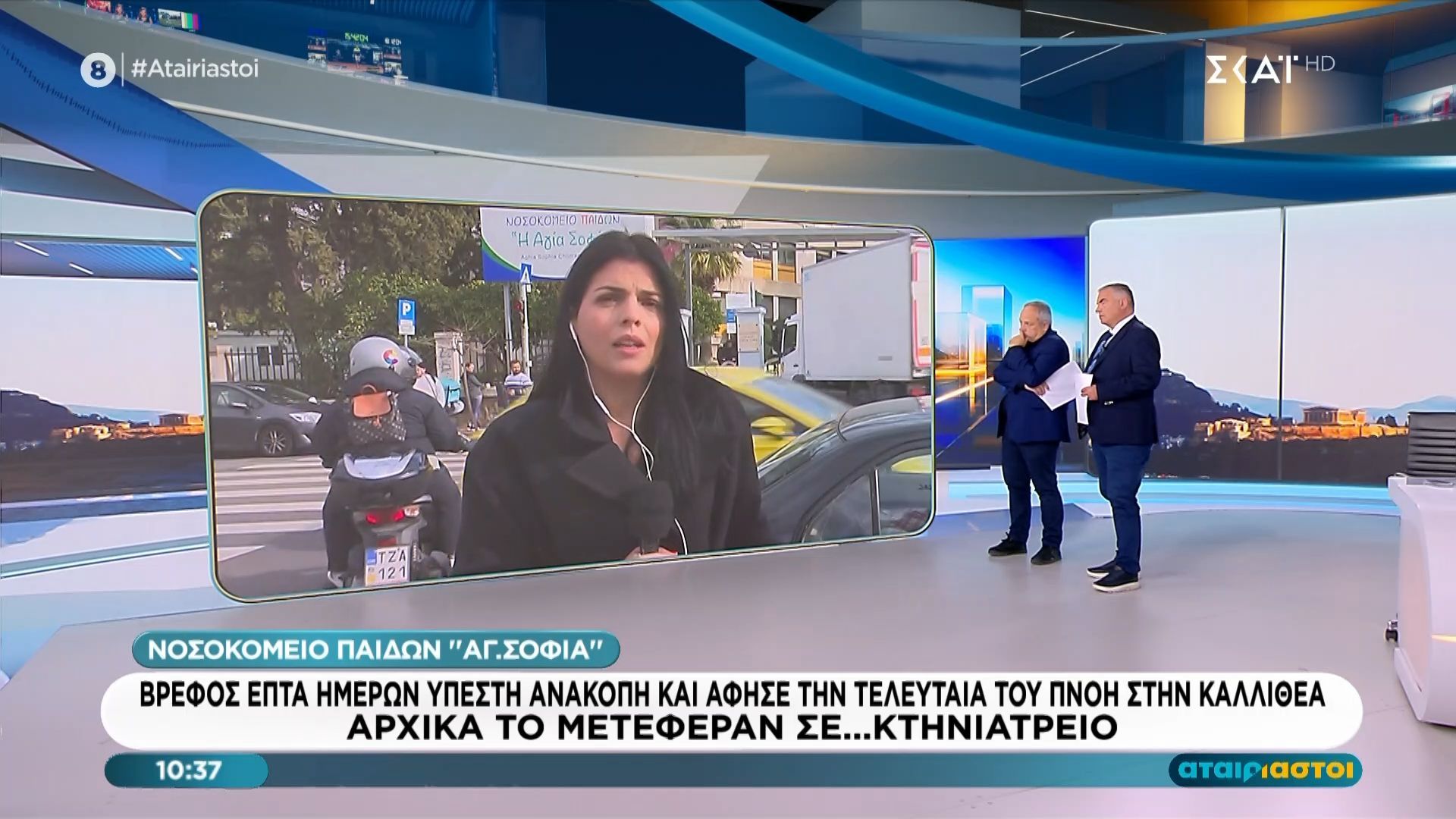 Τραγικό περιστατικό σημειώθηκε όταν ένα βρέφος λίγων ημερών μεταφέρθηκε χωρίς ζωή στο νοσοκομείο Παίδων Αγία Σοφία. Ο πατέρας και η θεία του, που κατάγονται από τη Ρουμανία και διαμένουν στην Καλλιθέα, αρχικά μετέφεραν το κοριτσάκι σε κτηνιατρείο στη Λεωφόρο Συγγρού.