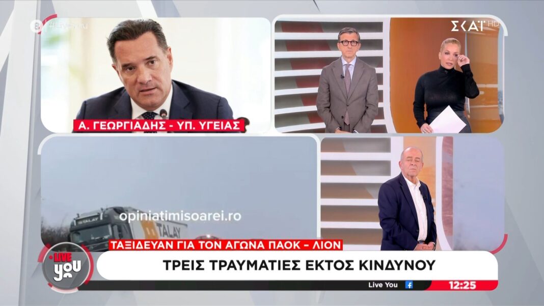 Ο Υπουργός Υγείας Άδωνις Γεωργιάδης παρέθεσε ενημέρωση σχετικά με την κατάσταση των φιλάθλων που τραυματίστηκαν στη Ρουμανία. Σύμφωνα με τον Υπουργό, η εξέλιξη της υγείας τους είναι πολύ καλύτερη από ότι αρχικά αναμενόταν, γεγονός που προσφέρει ανακούφιση στις οικογένειές τους.