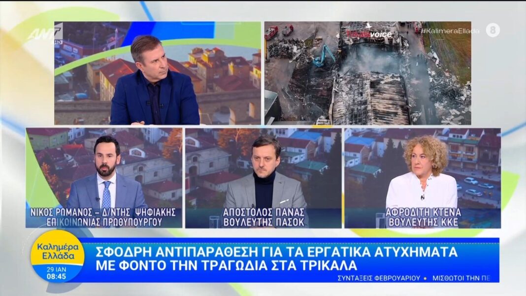 Η συζήτηση εστιάζει στα εργατικά ατυχήματα και τις συνθήκες ασφάλειας στους χώρους εργασίας, με αφορμή την πρόσφατη τραγωδία στα Τρίκαλα. Οι συμμετέχοντες, Νίκος Ρωμανός, Απόστολος Πάνας και Αφροδίτη Κτενά, αναλύουν τις ευθύνες των εργοδοτών και την ανάγκη για αυστηρότερη νομοθεσία.