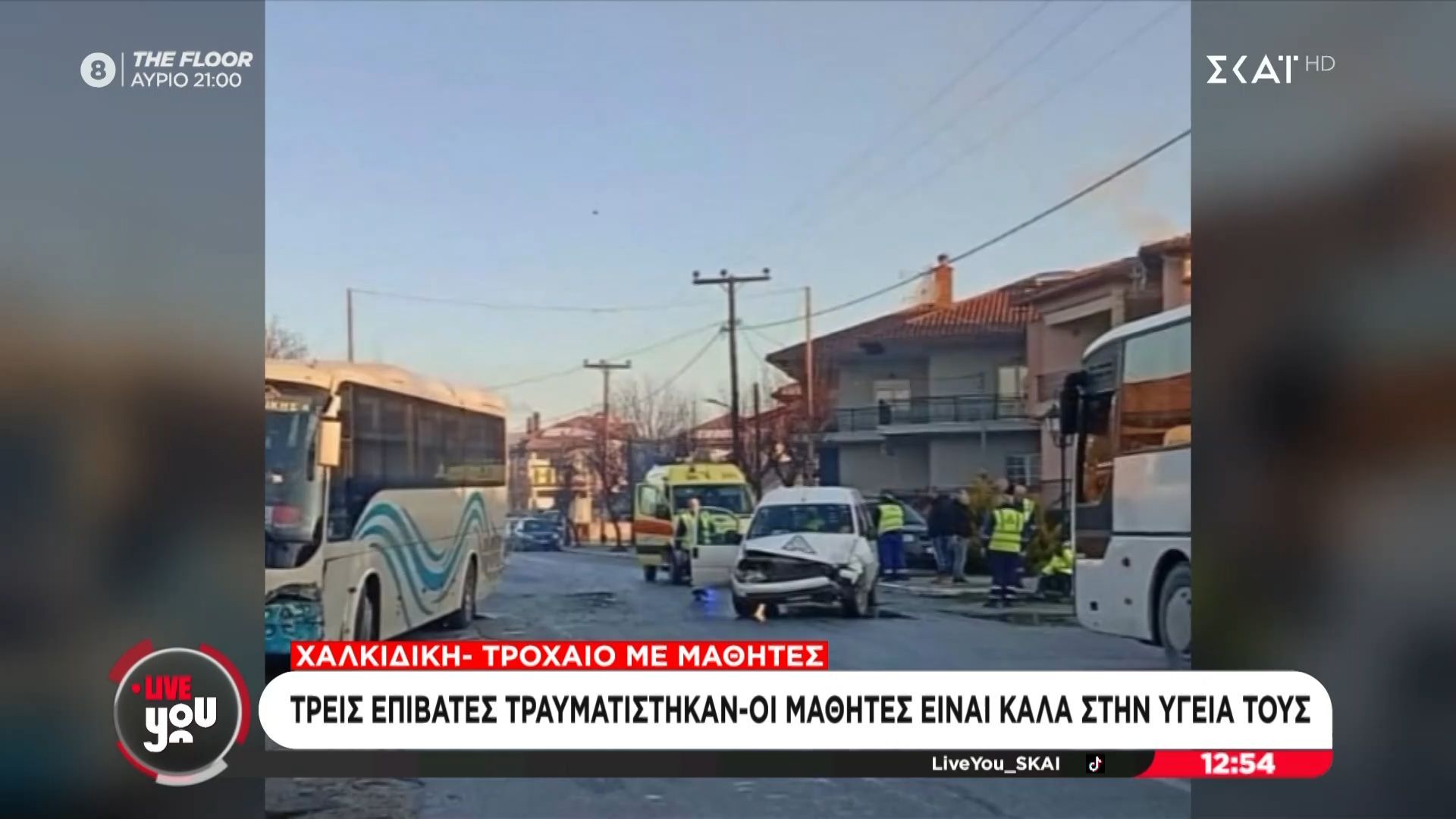 Στη Χαλκιδική σημειώθηκε σοβαρό ατύχημα όταν βανάκι συγκρούστηκε με λεωφορείο ΚΤΕΛ που μετέφερε μαθητές. Σύμφωνα με πληροφορίες, το βανάκι γλίστρησε λόγω των παγωμένων οδών και έπεσε πάνω στο λεωφορείο, το οποίο είχε σταματήσει.