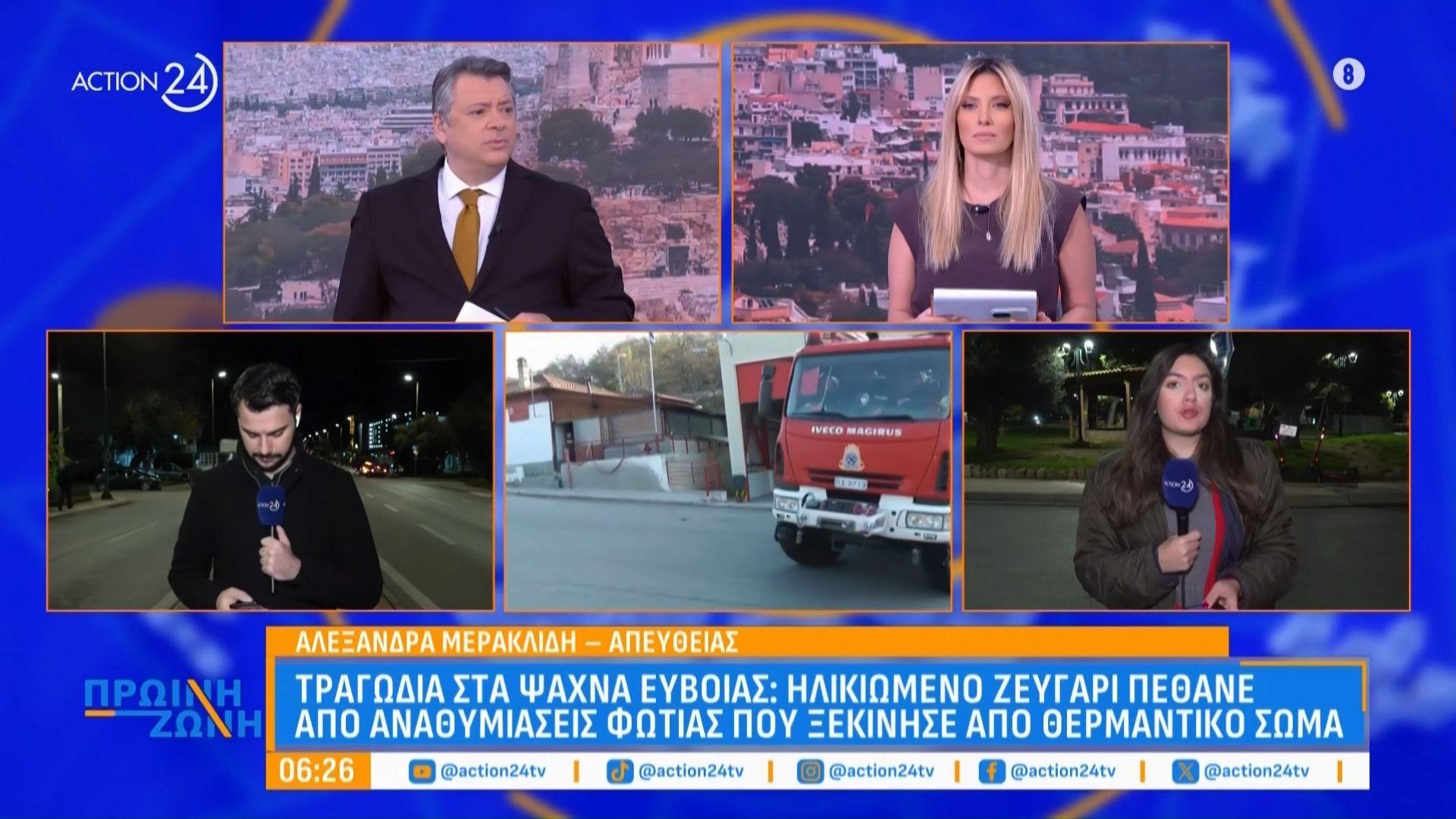 Ένα ηλικιωμένο ζευγάρι βρέθηκε νεκρό στο σπίτι τους στην περιοχή των Ψαχνών, έπειτα από αναθυμιάσεις που προκλήθηκαν από θερμαντικό σώμα. Οι αρχές ενημερώθηκαν για το συμβάν το πρωί και, παρά τις προσπάθειες διάσωσης, ήταν ήδη αργά για το ζευγάρι.