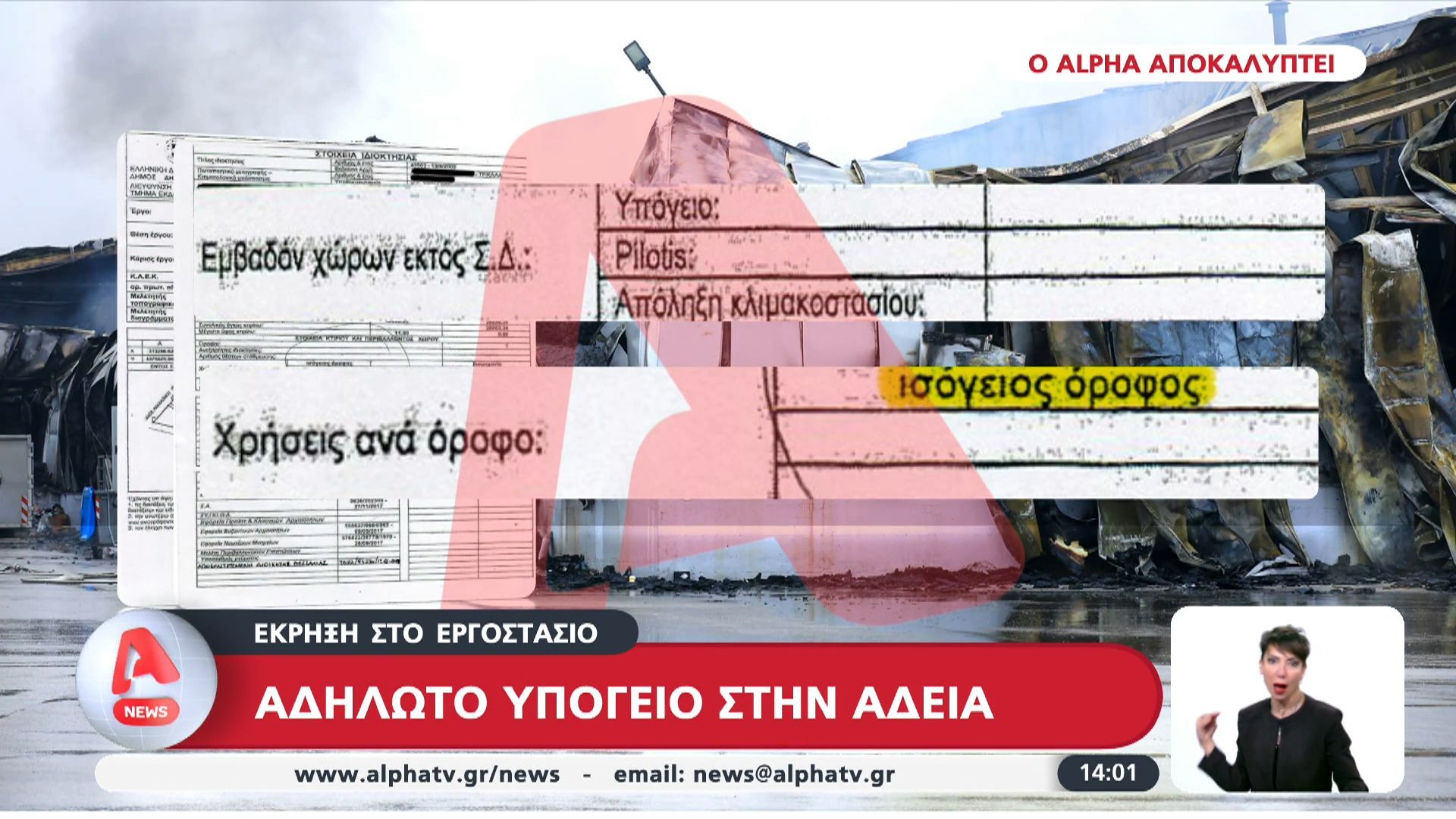 Σοβαρή έκρηξη σημειώθηκε σε εργοστάσιο, προκαλώντας σοβαρές ζημιές και αναστάτωση στην περιοχή. Έγγραφα που αποκαλύπτει ο Alpha δείχνουν ότι το υπόγειο του εργοστασίου δεν είχε δηλωθεί στις σχετικές άδειες, εγείροντας ερωτήματα σχετικά με την ασφάλεια των εγκαταστάσεων.