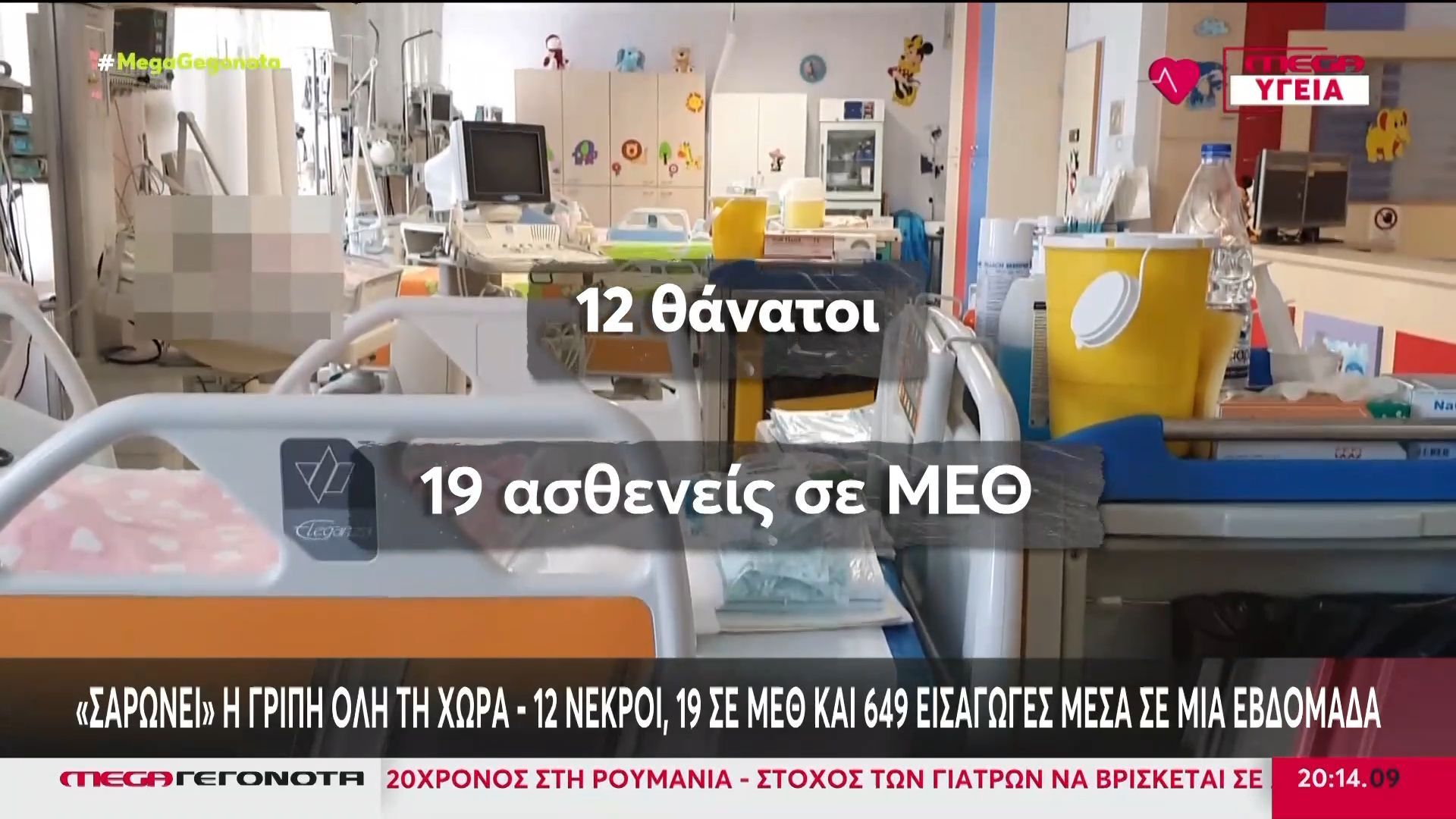 Η γρίπη πλήττει τη χώρα με ανησυχητικά ποσοστά, καθώς 12 άτομα έχουν χάσει τη ζωή τους την τελευταία εβδομάδα. Παράλληλα, 19 ασθενείς νοσηλεύονται σε μονάδες εντατικής θεραπείας λόγω σοβαρών επιπλοκών που προκλήθηκαν από τον ιό.