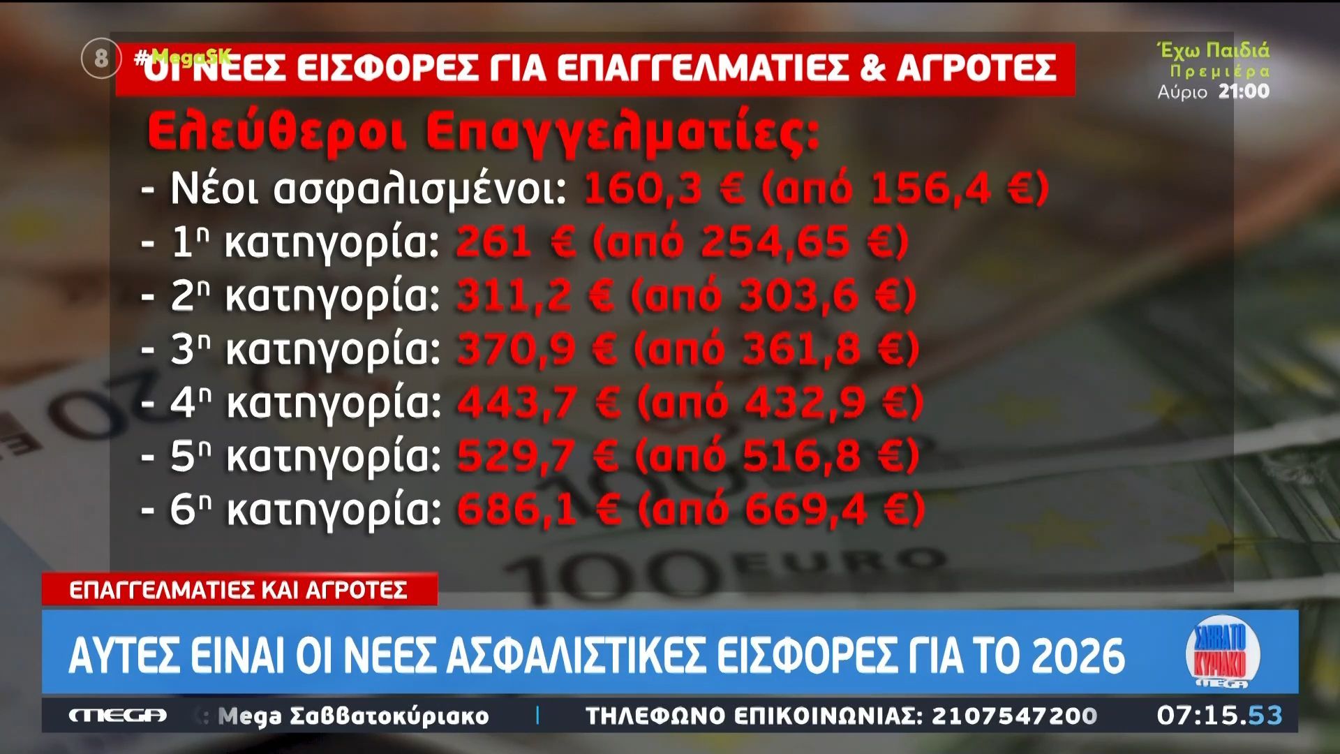 Οι νέες ασφαλιστικές εισφορές που θα ισχύσουν το 2026 επιφέρουν σημαντικές αλλαγές για επαγγελματίες και αγρότες. Οι εισφορές αυτές καθορίζονται από την κυβέρνηση, με στόχο την ενίσχυση του ασφαλιστικού συστήματος και την καλύτερη κάλυψη των ασφαλισμένων.