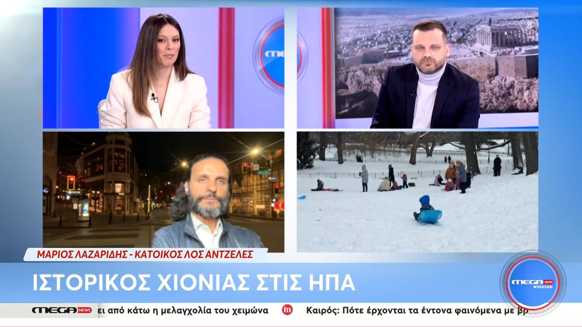 Ο Μάριος Λαζαρίδης, κάτοικος Λος Άντζελες, εκφράζει τις ανησυχίες του σχετικά με τον πρόσφατο χιονιά που πλήττει την περιοχή, ο οποίος έχει προκαλέσει δεκάδες θανάτους. Επισημαίνει ότι η έλλειψη προσοχής στις προγνώσεις των μετεωρολόγων συμβάλλει στην αύξηση των κινδύνων για τους πολίτες.