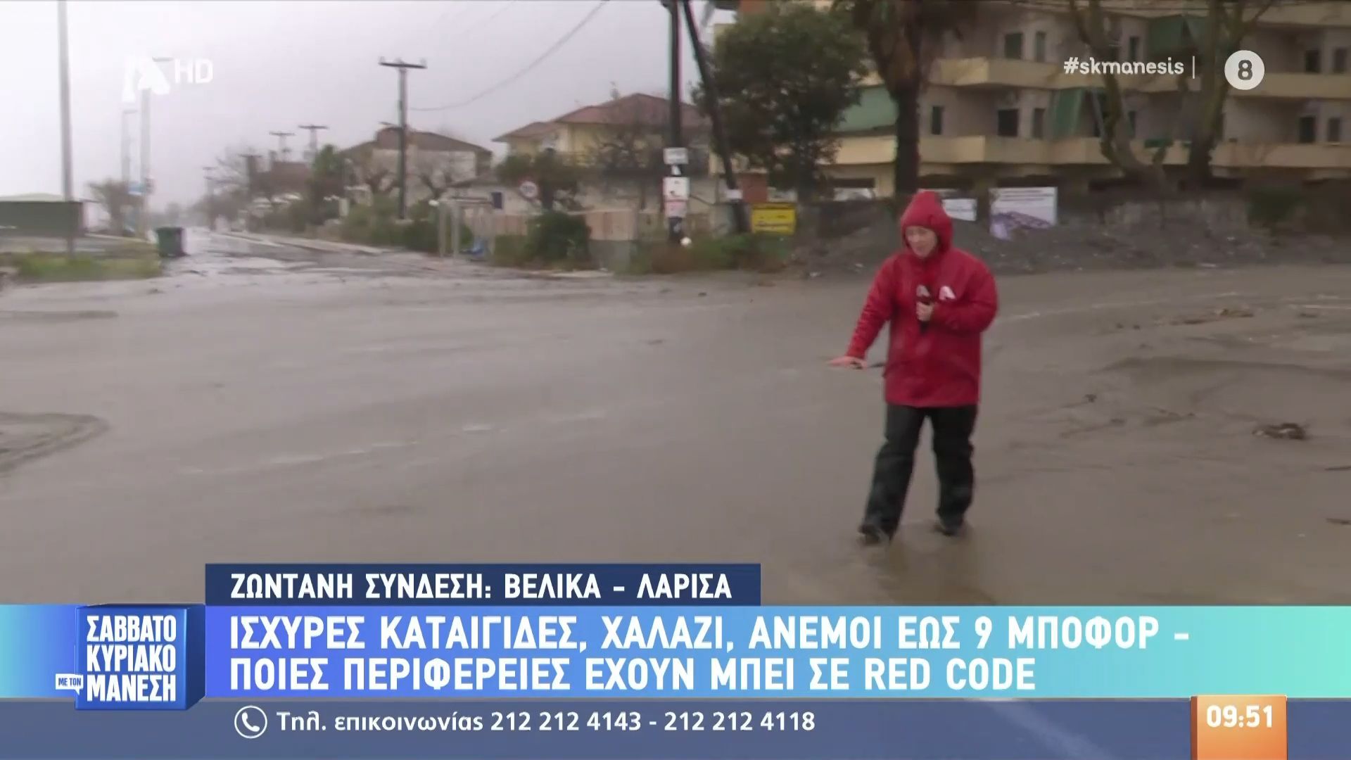 Ισχυρές καταιγίδες πλήττουν τη Λάρισα, προκαλώντας σοβαρές πλημμύρες σε πολλές περιοχές. Οι ισχυροί άνεμοι, που φτάνουν τα 9 μποφόρ, συνοδεύονται από χαλάζι, με αποτέλεσμα η θάλασσα να εισχωρήσει σε δρόμους και κατοικημένες περιοχές.