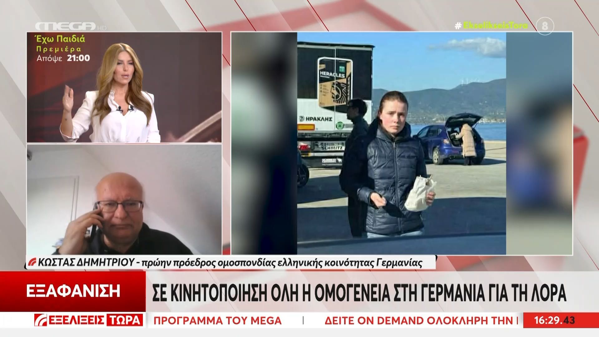 Η ελληνική κοινότητα στη Γερμανία έχει κινητοποιηθεί έντονα για την εξαφάνιση της 16χρονης Λόρας, με τον πρώην πρόεδρο της κοινότητας, Κ. Δημητρίου, να τονίζει τη σημασία της στήριξης και της αλληλεγγύης. Υπογραμμίζει ότι η κατάσταση απαιτεί την ενεργή συμμετοχή όλων, με σκοπό την ταχεία ανεύρεση της νεαρής κοπέλας.