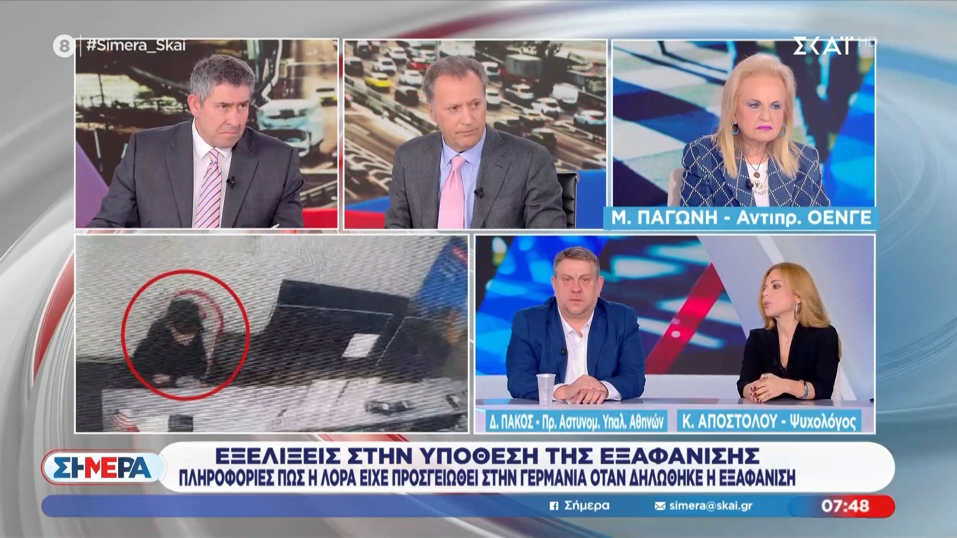 Ο Πρόεδρος Αστυνομικών Υπαλλήλων Αθηνών, Διονύσης Πάκος, αναφέρεται στην υπόθεση εξαφάνισης της Λόρας, υποστηρίζοντας ότι ενδέχεται να είχε συνεργάτες στην πορεία της. Η συζήτηση εστιάζει επίσης στη δολοφονία ενός 27χρονου στη Νέα Πέραμο, γεγονός που έχει προκαλέσει ανησυχία στην τοπική κοινωνία.