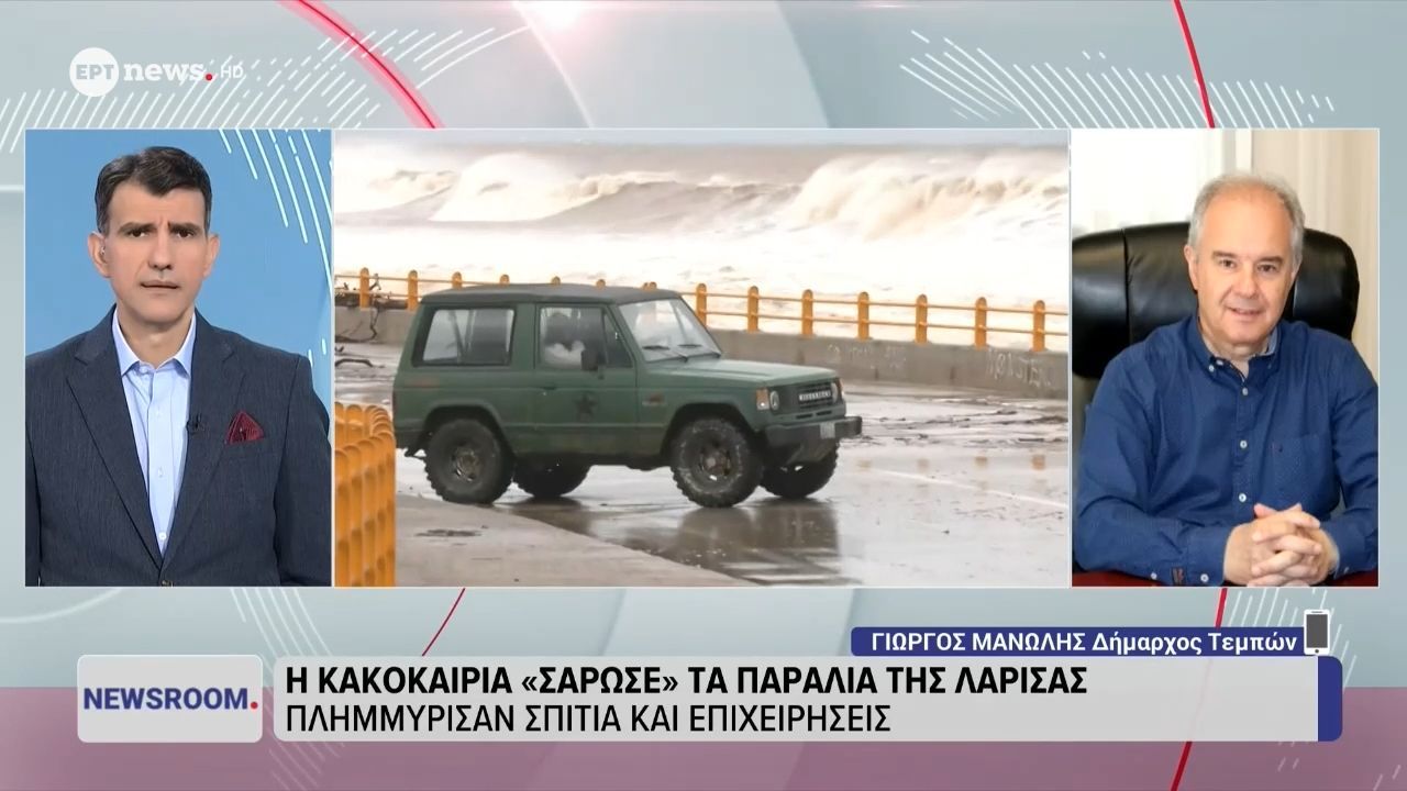 Ο δήμαρχος Τεμπών Γιώργος Μανώλης στο «Newsroom» για την κακοκαιρία στα παράλια της Λάρισας