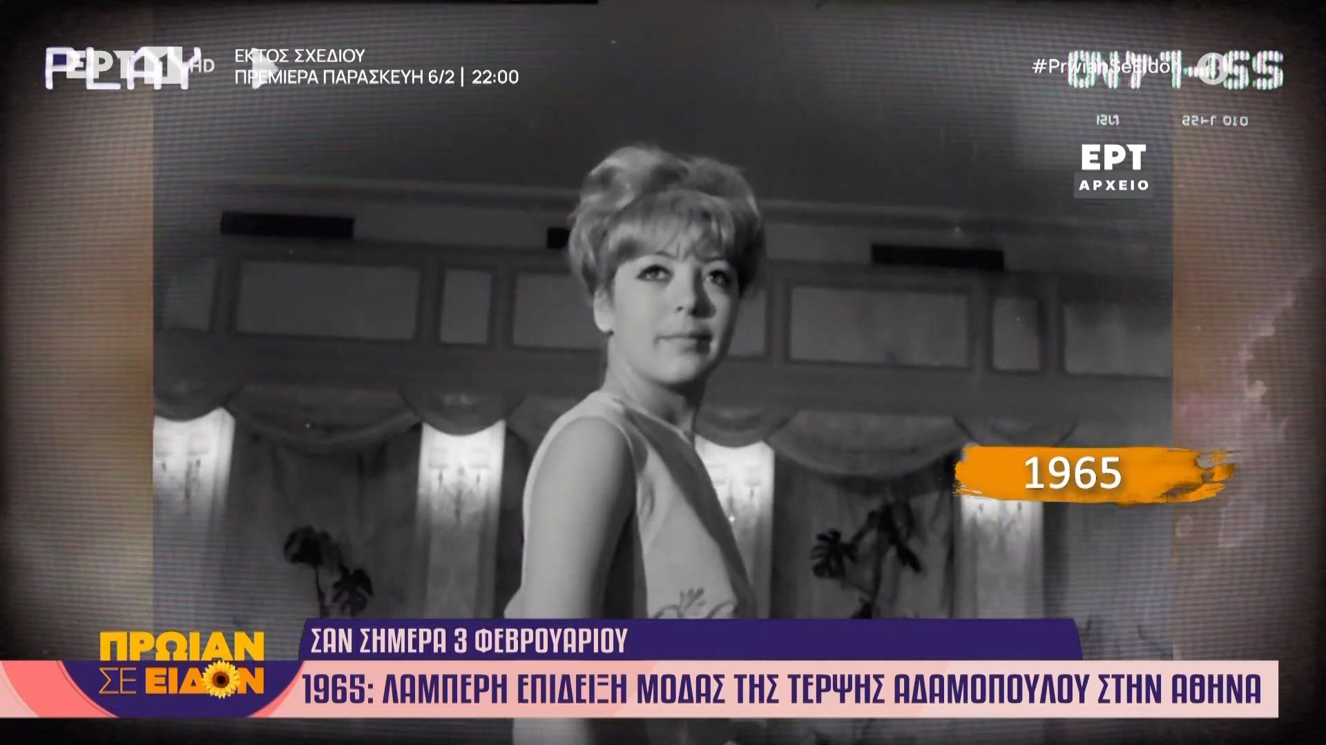 Η επίδειξη μόδας που πραγματοποιήθηκε στην Αθήνα στις 3 Φεβρουαρίου 1965 ανέδειξε τη δημιουργική ιδιοφυΐα της Τέρψης Αδαμοπούλου. Οι εντυπωσιακές συλλογές της συνδύασαν παραδοσιακά στοιχεία με μοντέρνες γραμμές, προσελκύοντας το ενδιαφέρον των παρευρισκομένων και των μέσων ενημέρωσης.