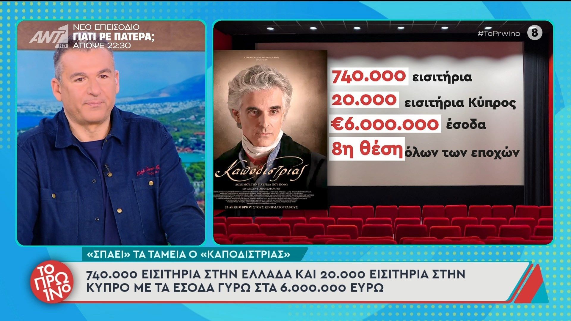 Η επιτυχία του Καποδίστρια στην Ελλάδα συνεχίζεται με 740.000 εισιτήρια, αποδεικνύοντας την τεράστια απήχηση του έργου στο κοινό. Παράλληλα, η Κύπρος συμμετέχει δυναμικά με 20.000 εισιτήρια, επιβεβαιώνοντας την αγάπη των θεατών για αυτή την παραγωγή.