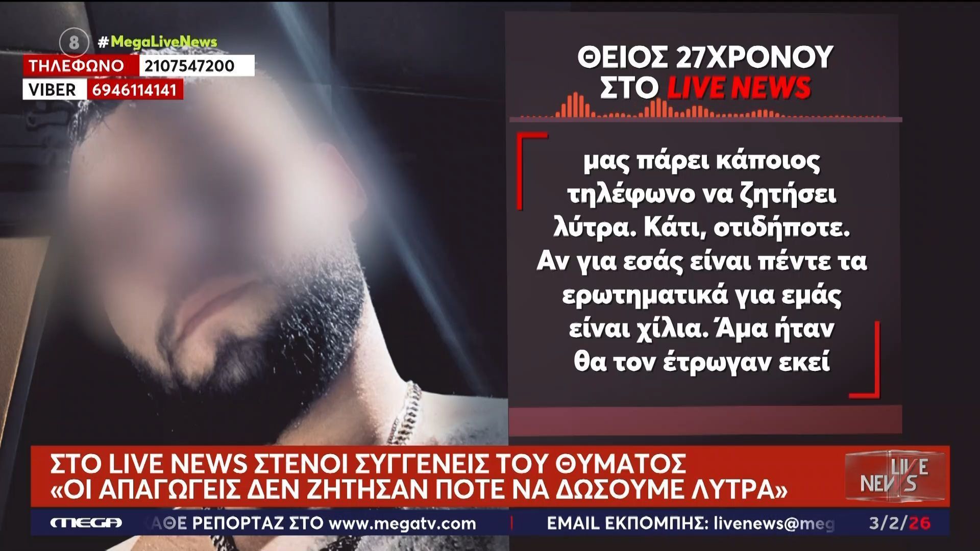 Οι στενοί συγγενείς του 27χρονου θύματος δηλώνουν σοκαρισμένοι από τις συνθήκες κάτω από τις οποίες οδηγήθηκε στη δολοφονία του. Οι ιατροδικαστικές εξετάσεις αποκαλύπτουν λεπτομέρειες για το μαρτύριο που υπέστη πριν από τον θάνατό του, ενώ οι νέες μαρτυρίες ρίχνουν φως στην υπόθεση.