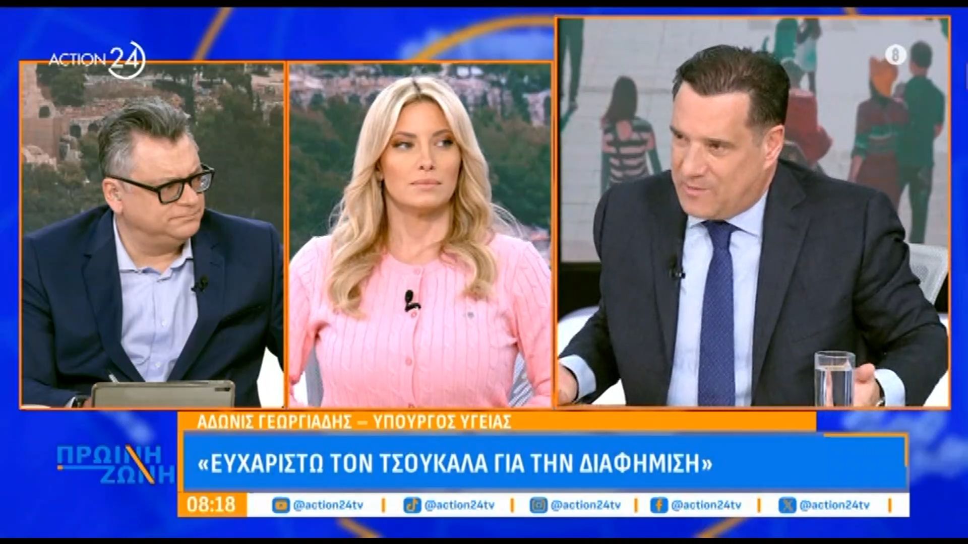 Ο υπουργός Υγείας, Άδωνις Γεωργιάδης, ευχαρίστησε δημόσια τον κύριο Κ. Τσουκαλά για την υποστήριξή του και την “διαφήμιση” που παρέχει στο υπουργείο. Η δήλωσή του έγινε κατά τη διάρκεια της εμφάνισής του στην εκπομπή «Πρωινή Ζώνη», όπου συζητήθηκαν τρέχοντα θέματα της υγειονομικής πολιτικής.