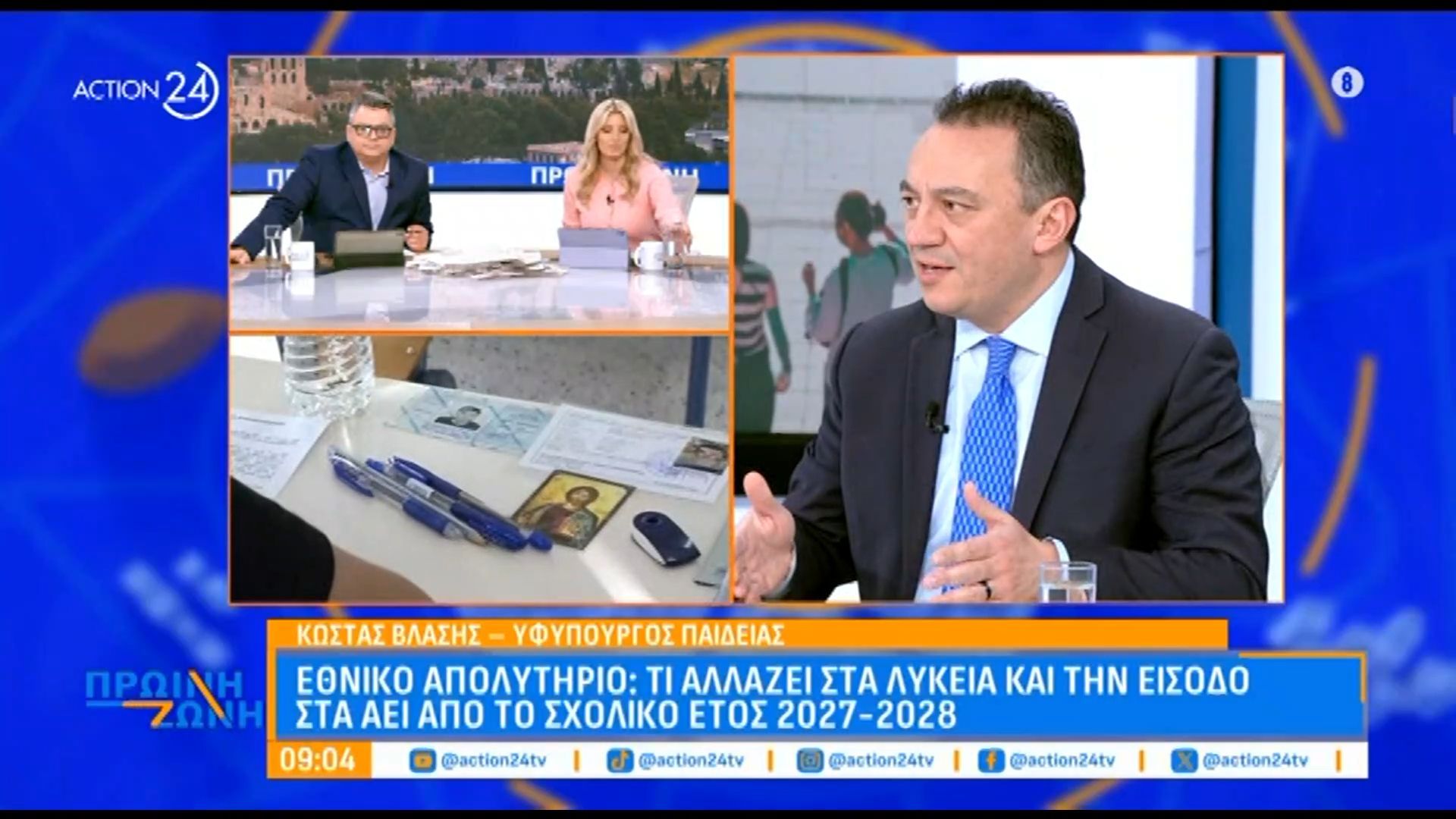 Στη διάρκεια της συνέντευξής του στην «Πρωινή Ζώνη», ανέφερε ότι η κυβέρνηση προγραμματίζει να διατηρήσει το σύστημα των πανελληνίων εξετάσεων, επισημαίνοντας την ανάγκη για αξιοκρατία και ίσες ευκαιρίες για όλους τους μαθητές. Ο κ. Βλάσης τόνισε ότι οι αλλαγές στην εκπαιδευτική πολιτική θα γίνουν με γνώμονα την ενίσχυση της ποιότητας της εκπαίδευσης.