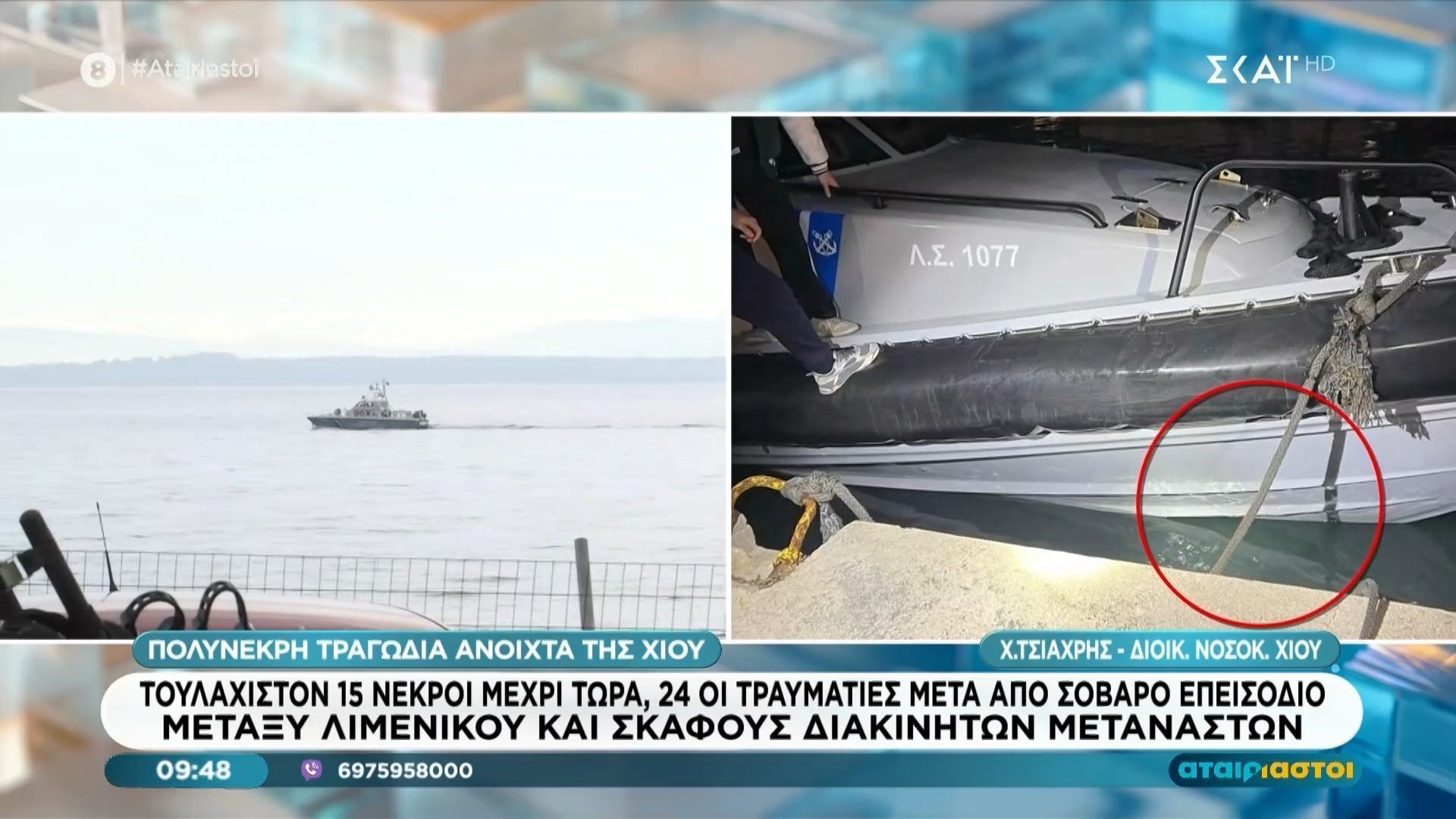 Τουλάχιστον 15 άνθρωποι έχουν χάσει τη ζωή τους σε ένα τραγικό περιστατικό στη Χίο, που συνέβη κατά τη διάρκεια επιχείρησης του Λιμενικού κατά των διακινητών. Ο Διοικητής του νοσοκομείου Χρήστος Τσιαχρής δήλωσε ότι η κατάσταση είναι κρίσιμη και ότι ενδέχεται να χρειαστεί αεροδιακομιδή για 2-3 άτομα που έχουν τραυματιστεί σοβαρά.