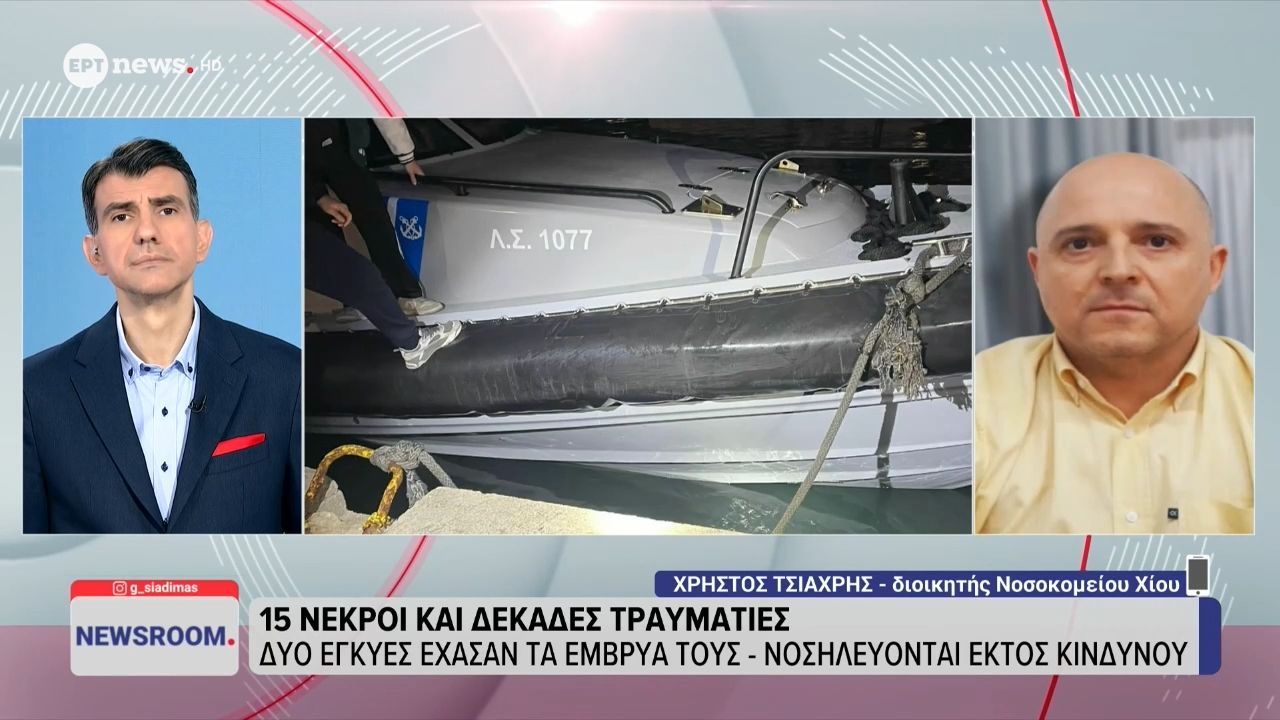 Ο διοικητής του νοσοκομείου της Χίου, Χρήστος Τσιαχρής, παρέχει πληροφορίες σχετικά με την τραγική ναυτική καταστροφή που συνέβη ανοιχτά του νησιού. Η κατάσταση είναι κρίσιμη, με πολλούς τραυματίες να έχουν μεταφερθεί στο νοσοκομείο και την ομάδα ιατρών να εργάζεται αδιάκοπα για την παροχή βοήθειας.