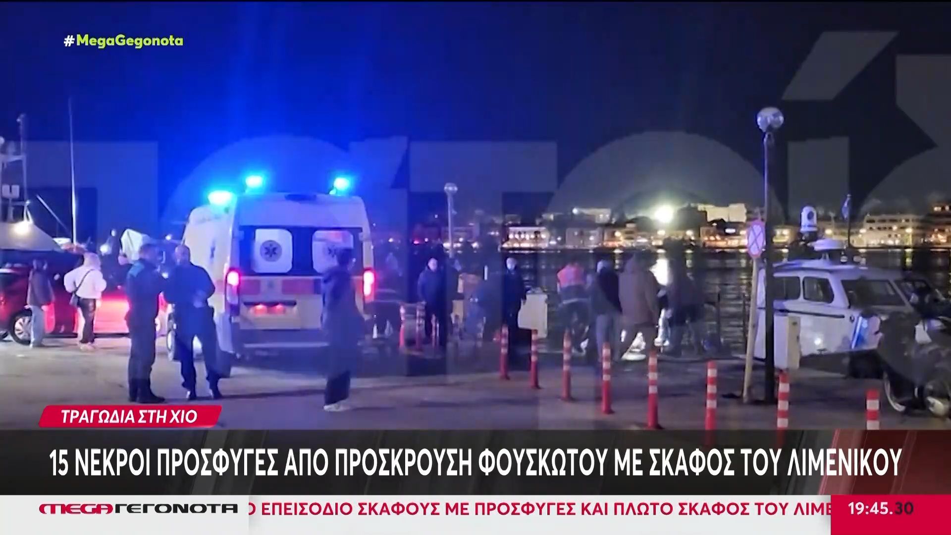 Τραγικό δυστύχημα σημειώθηκε στη Χίο, όπου 15 πρόσφυγες έχασαν τη ζωή τους μετά από πρόσκρουση φουσκωτού σκάφους με σκάφος του λιμενικού. Η σύγκρουση είχε σοβαρές συνέπειες, με 24 άτομα να έχουν υποστεί βαριά τραύματα και να χρήζουν άμεσης ιατρικής βοήθειας.