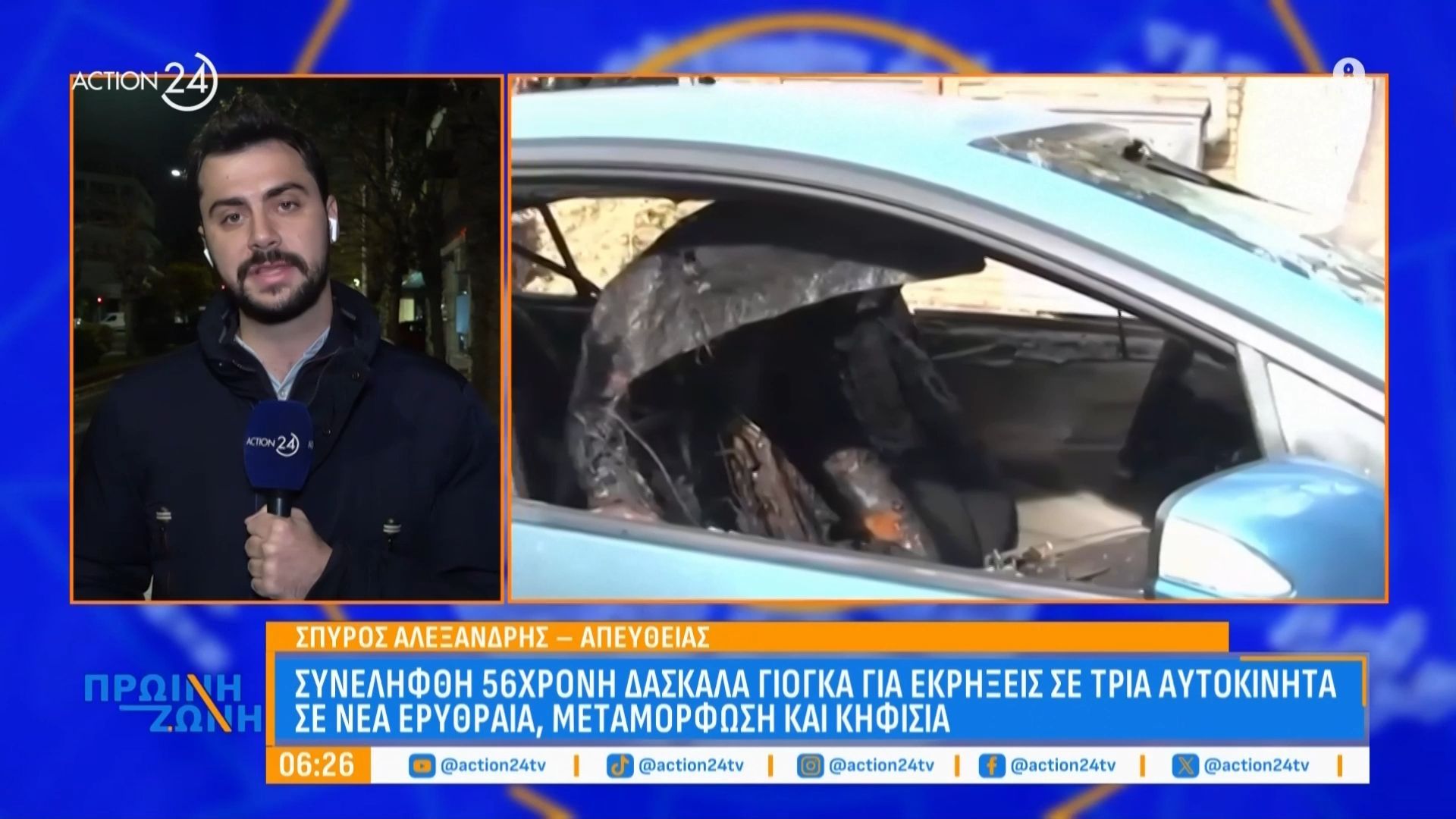 Συλλήψεις στην Αττική μετά από εκρήξεις σε οχήματα, με 56χρονη δασκάλα γιόγκα ως βασική ύποπτη και έρευνες για πιθανούς συνεργούς, ανησυχία στους πολίτες.