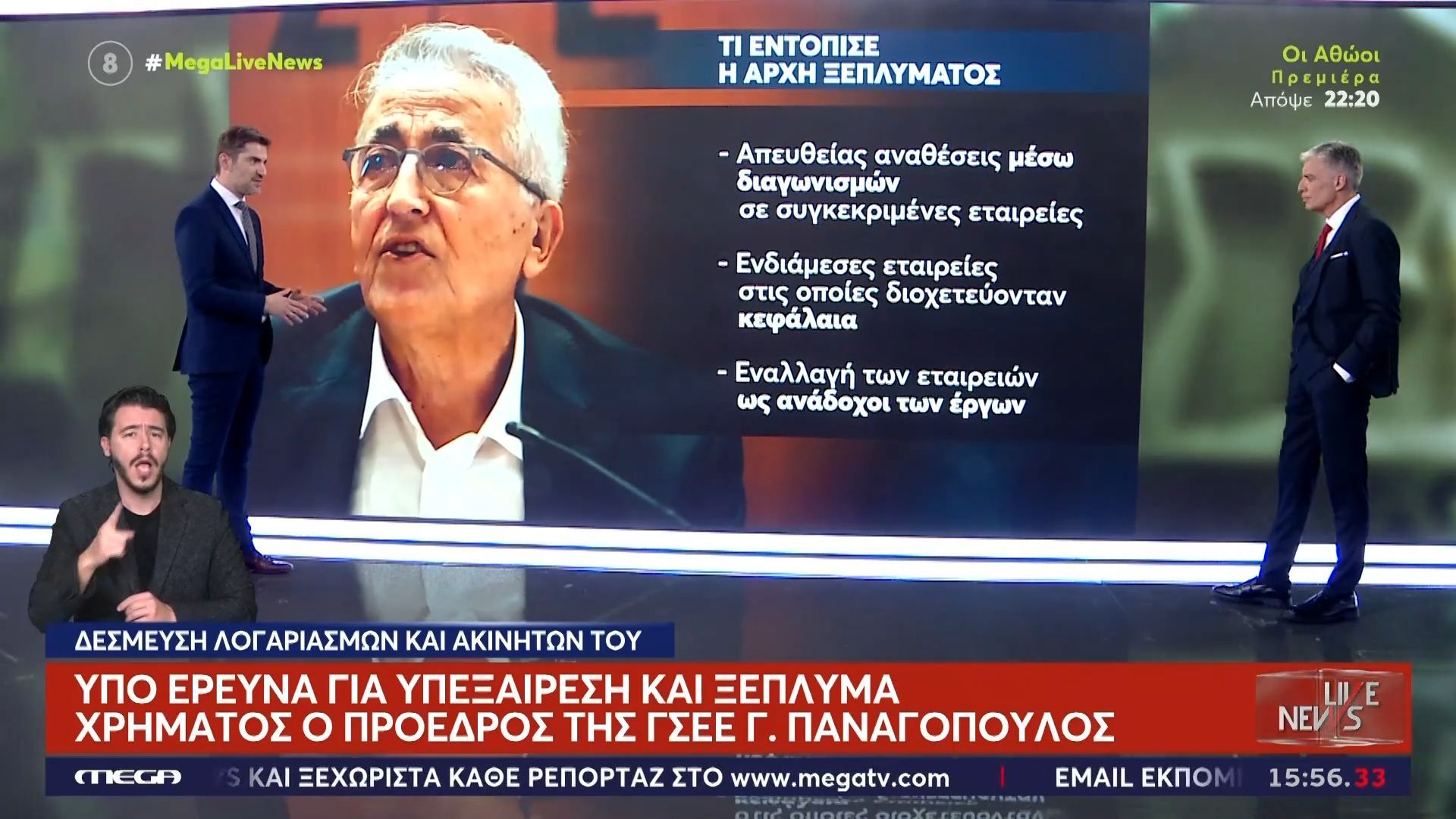 Ο πρόεδρος της ΓΣΕΕ, Γ. Παναγόπουλος, βρίσκεται υπό έρευνα για υποθέσεις υπεξαίρεσης και ξέπλυμα χρημάτων. Η αρχή ξεπλύματος χρημάτων εντόπισε σοβαρές παρατυπίες, με αποτέλεσμα τη δέσμευση λογαριασμών και ακινήτων του.