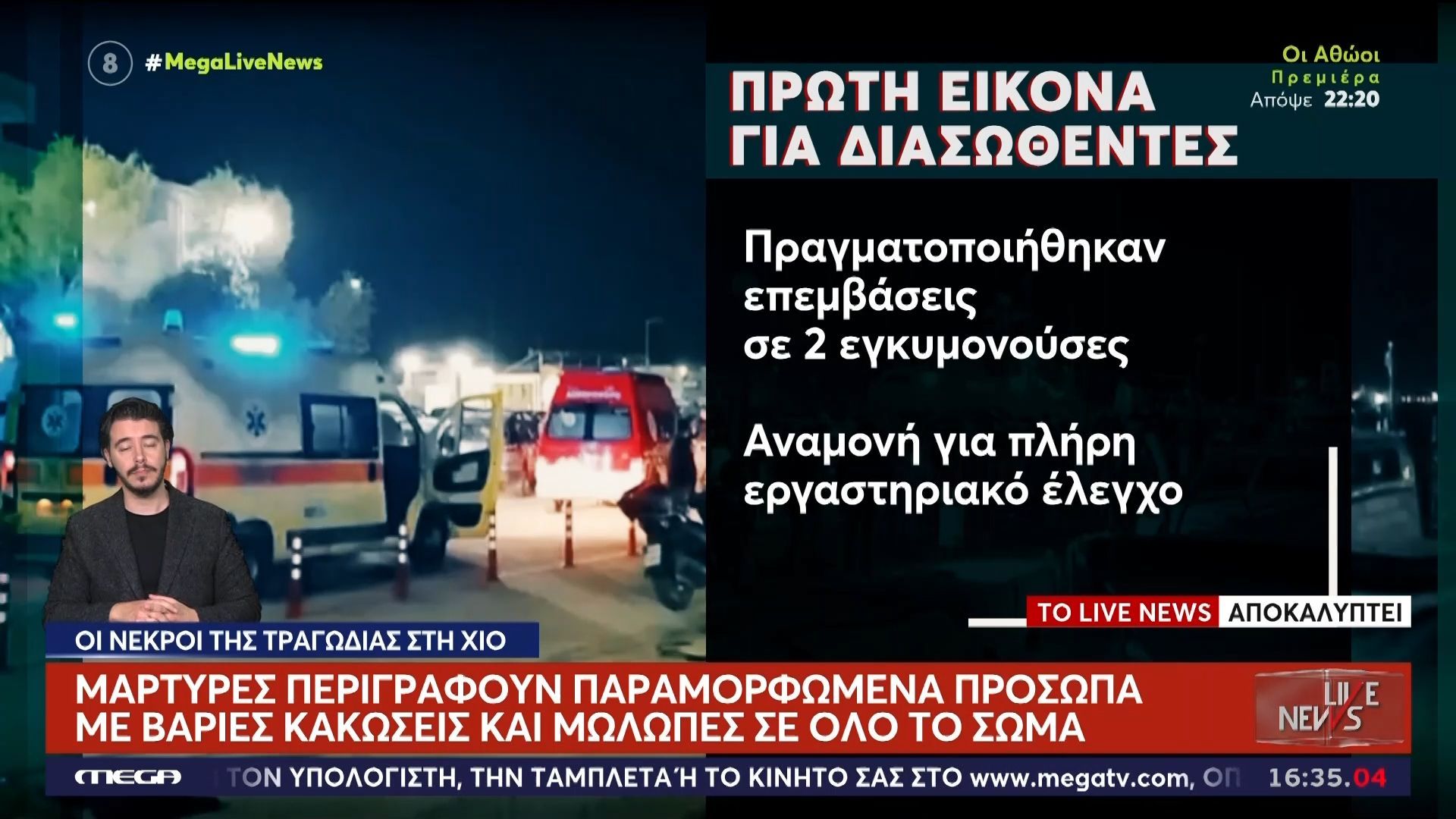 Σοκ προκαλούν οι πρώτες πληροφορίες σχετικά με τις συνθήκες θανάτου των μεταναστών στη Χίο, καθώς οι σοροί φέρουν εμφανή χτυπήματα στο κεφάλι και τον θώρακα. Μαρτυρίες από αυτόπτες μάρτυρες αναφέρουν παραμορφωμένα πρόσωπα, γεγονός που ενισχύει τους φόβους για βίαιες συνθήκες που οδήγησαν στον θάνατό τους.