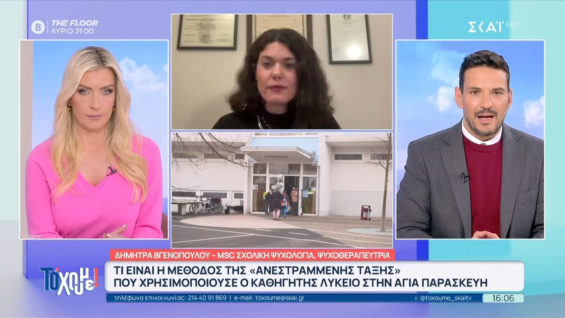 Η ψυχοθεραπεύτρια Δήμητρα Βγενοπούλου αναλύει τη μέθοδο της “Ανεστραμμένης τάξης” σε σχέση με την πρόσφατη συμπεριφορά εκπαιδευτικού σε σχολείο της Αγίας Παρασκευής. Αυτή η προσέγγιση στοχεύει στην ενίσχυση της ενεργούς συμμετοχής των μαθητών στη διαδικασία της μάθησης και στη δημιουργία ενός πιο συνεργατικού περιβάλλοντος.