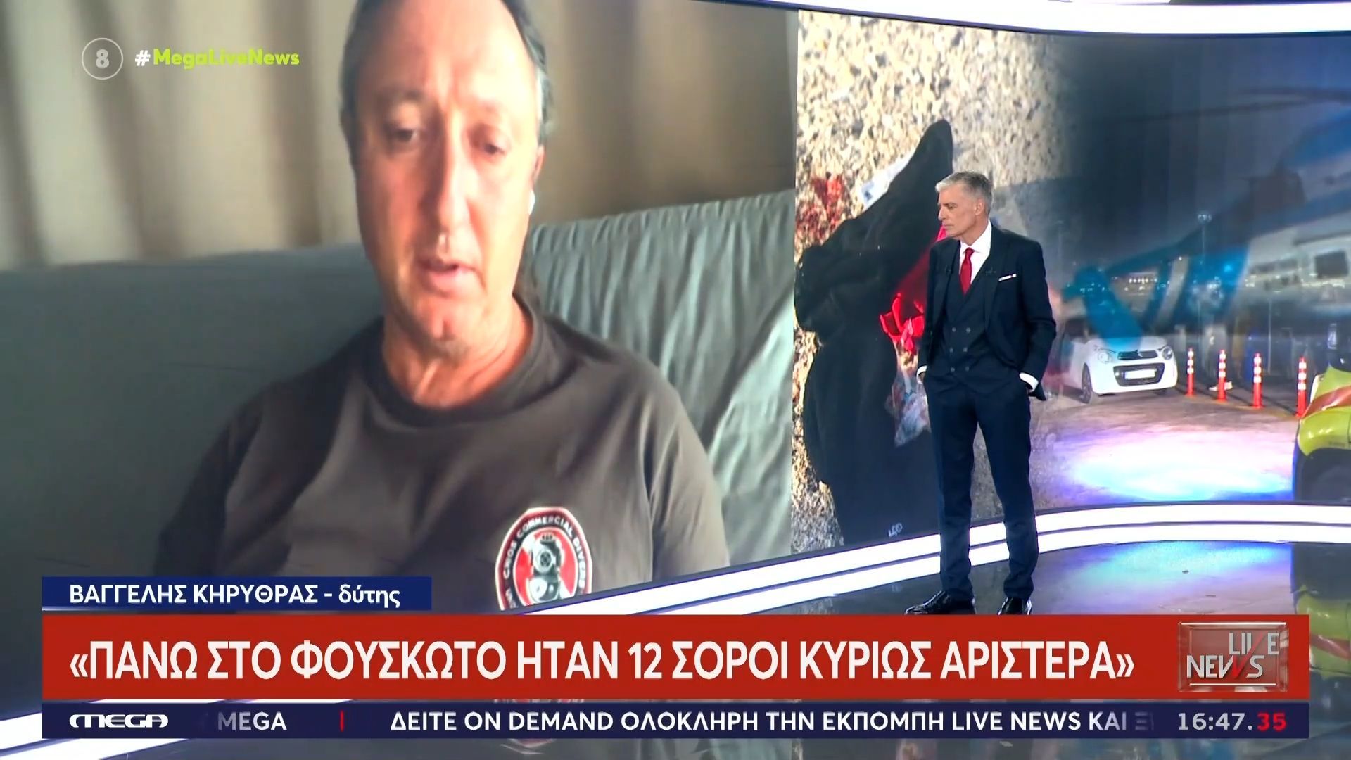 Δύτης που συμμετείχε στην επιχείρηση διάσωσης στη Χίο περιγράφει τις συνθήκες που επικρατούσαν κατά την ανεύρεση του φουσκωτού σκάφους μεταναστών. Στο κάτω μέρος του σκάφους εντοπίστηκε πλαστικό υλικό, ενώ πάνω σε αυτό βρέθηκαν 12 σοροί, κυρίως στην αριστερή πλευρά.