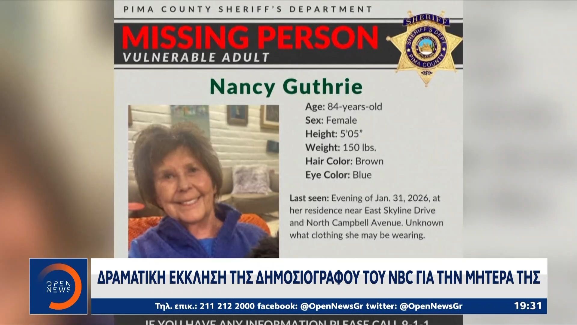 Δραματικές εξελίξεις σημειώνονται στην υπόθεση απαγωγής της μητέρας δημοσιογράφου του NBC, η οποία αγνοείται εδώ και πέντε ημέρες. Τα παιδιά της, σε μια συγκλονιστική έκκληση, ζητούν από τους απαγωγείς να επικοινωνήσουν και να ενημερώσουν για την κατάσταση της υγείας της.