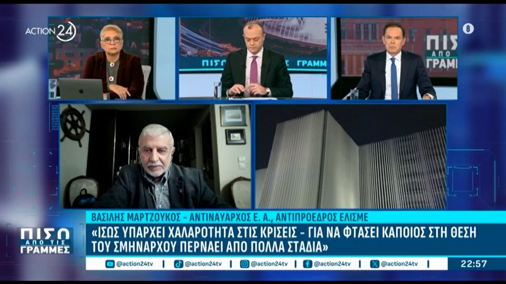 Ο αντιναύαρχος ε.α. Β. Μαρτζούκος, Αντιπρόεδρος της ΕΛΙΣΜΕ, αναλύει τις σοβαρές συνέπειες της πρόσφατης σύλληψης Έλληνα Αξιωματικού που κατηγορείται για κατασκοπεία. Σύμφωνα με τον ίδιο, η περιοχή της Ανατολικής Μεσογείου έχει γίνει πεδίο αυξανόμενης διείσδυσης της Κίνας, γεγονός που εγείρει ανησυχίες για την εθνική ασφάλεια.