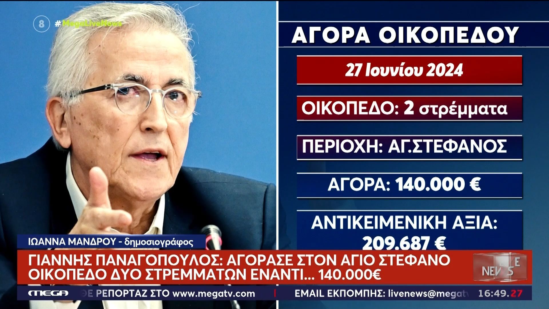 Υπόθεση Παναγόπουλου: Η αγορά οικοπέδου δύο στρεμμάτων αντί 140.000€ στον Άγιο Στέφανο που ξεκίνησε την έρευνα