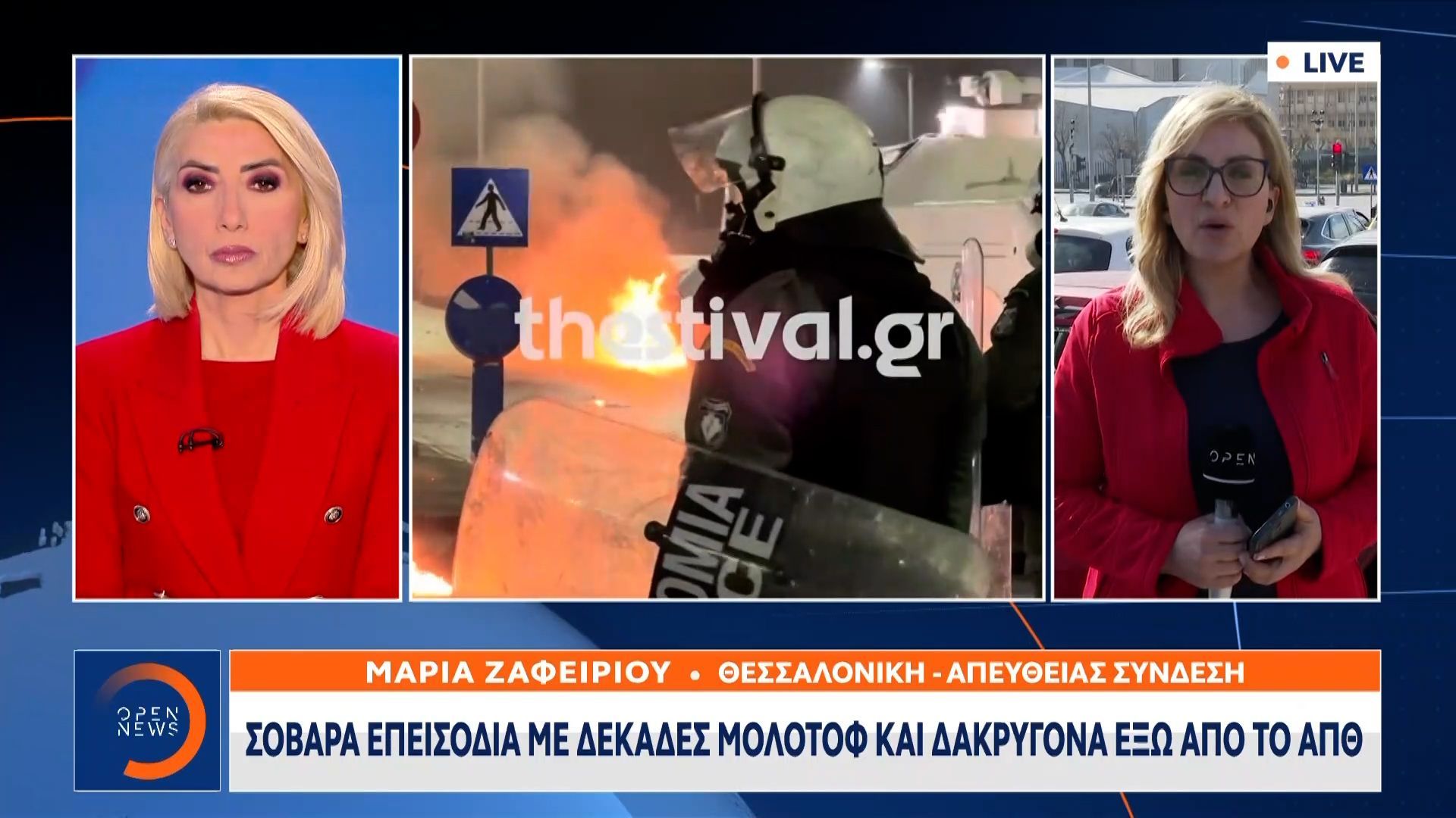 Σοβαρά επεισόδια ξέσπασαν στη Θεσσαλονίκη, με δεκάδες μολότοφ να εκτοξεύονται από ομάδες διαδηλωτών έξω από το Αριστοτέλειο Πανεπιστήμιο. Οι συγκρούσεις προκάλεσαν έντονη ανησυχία, ενώ οι αρχές προχώρησαν σε προσαγωγές 309 ατόμων που συμμετείχαν ή προκάλεσαν τα επεισόδια.