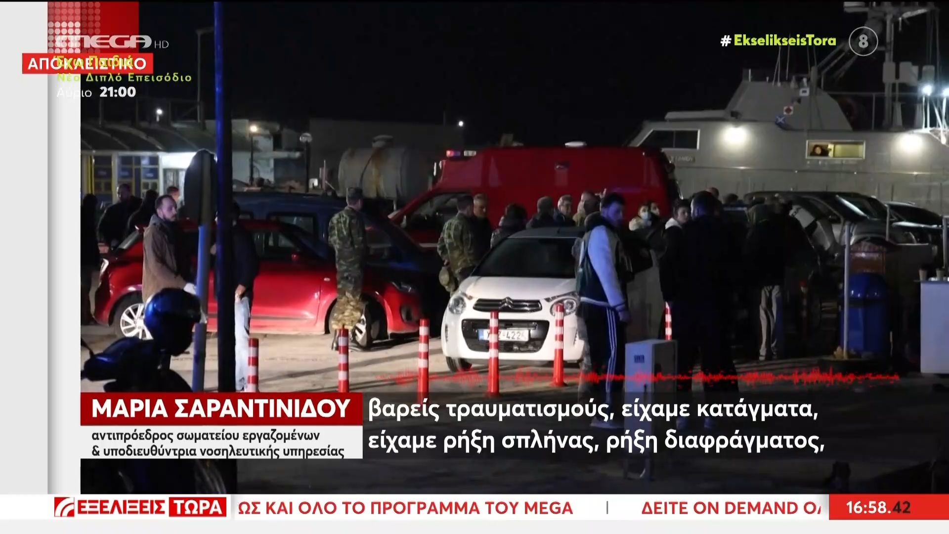 Η υποδιευθύντρια νοσηλευτικής υπηρεσίας στο νοσοκομείο Χίου αναφέρεται στους τραυματισμούς που υπέστησαν οι επιβάτες μετά τη σύγκρουση σκάφους του λιμενικού με λέμβο. Σύμφωνα με την ίδια, οι τραυματισμοί ήταν σοβαροί και παρέπεμπαν σε περιστατικό τροχαίου, γεγονός που προκαλεί ανησυχία για την ασφάλεια στη θάλασσα.