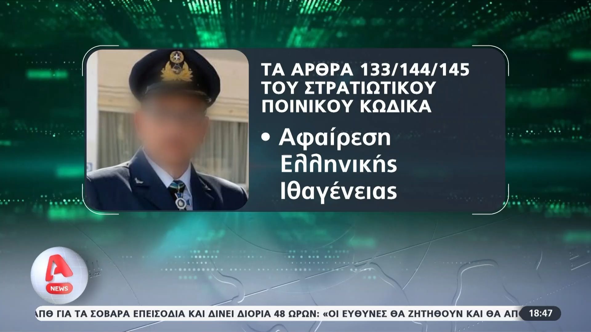 Στο επίκεντρο της σημερινής ειδησεογραφίας βρίσκονται οι αποκαλύψεις γύρω από τις δραστηριότητες ενός Σμηνάρχου, ο οποίος φέρεται να έχει αναμιχθεί σε σοβαρές παρανομίες. Σύμφωνα με τις πληροφορίες, οι βαρύτατες ποινές που αντιμετωπίζει σχετίζονται με την παραβίαση στρατιωτικών κανονισμών και την εμπλοκή του σε απιστία.