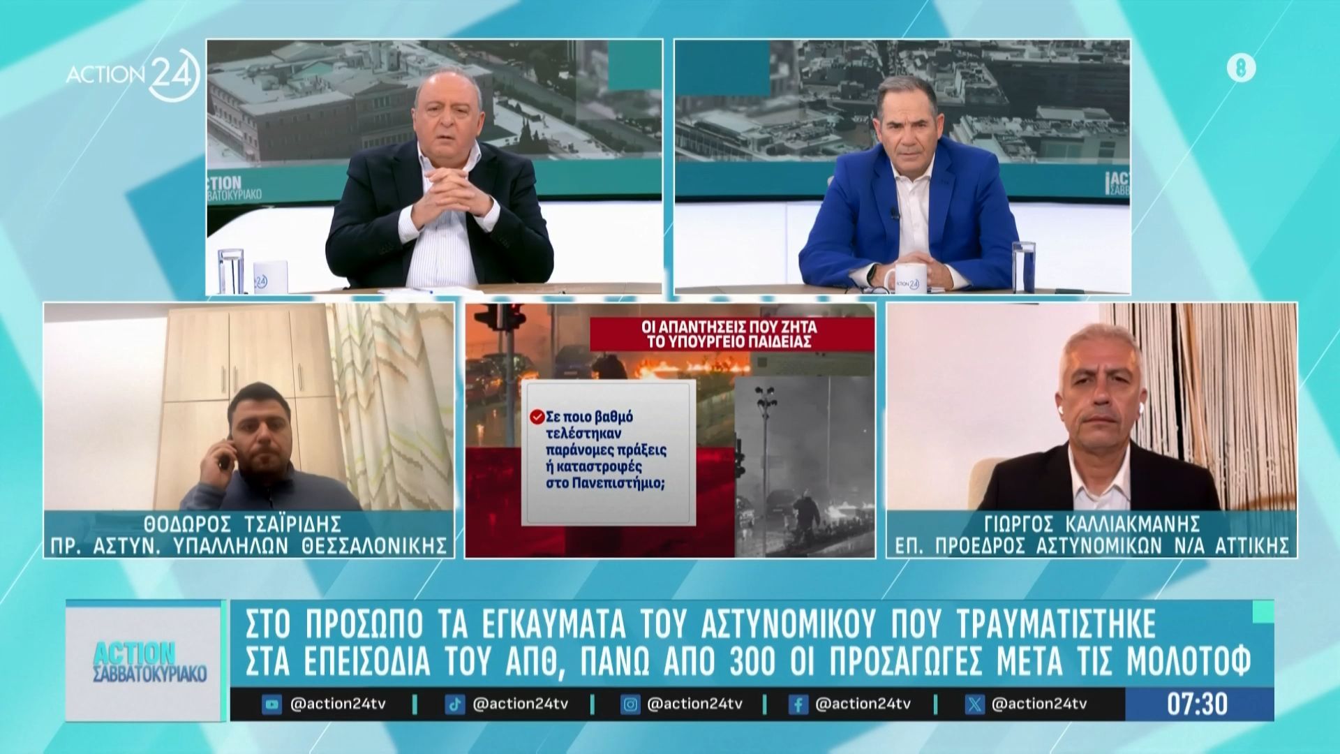 Ένας αστυνομικός υπέστη εγκαύματα στο πρόσωπο και μεταφέρθηκε στο νοσοκομείο για ιατρική περίθαλψη. Οι αρχές ενίσχυσαν την παρουσία τους στο campus, προκειμένου να αποκαταστήσουν την τάξη και να διερευνήσουν τα συμβάντα. Η κατάσταση παραμένει τεταμένη, με τις δυνάμεις ασφαλείας να παρακολουθούν στενά την εξέλιξη της κατάστασης.