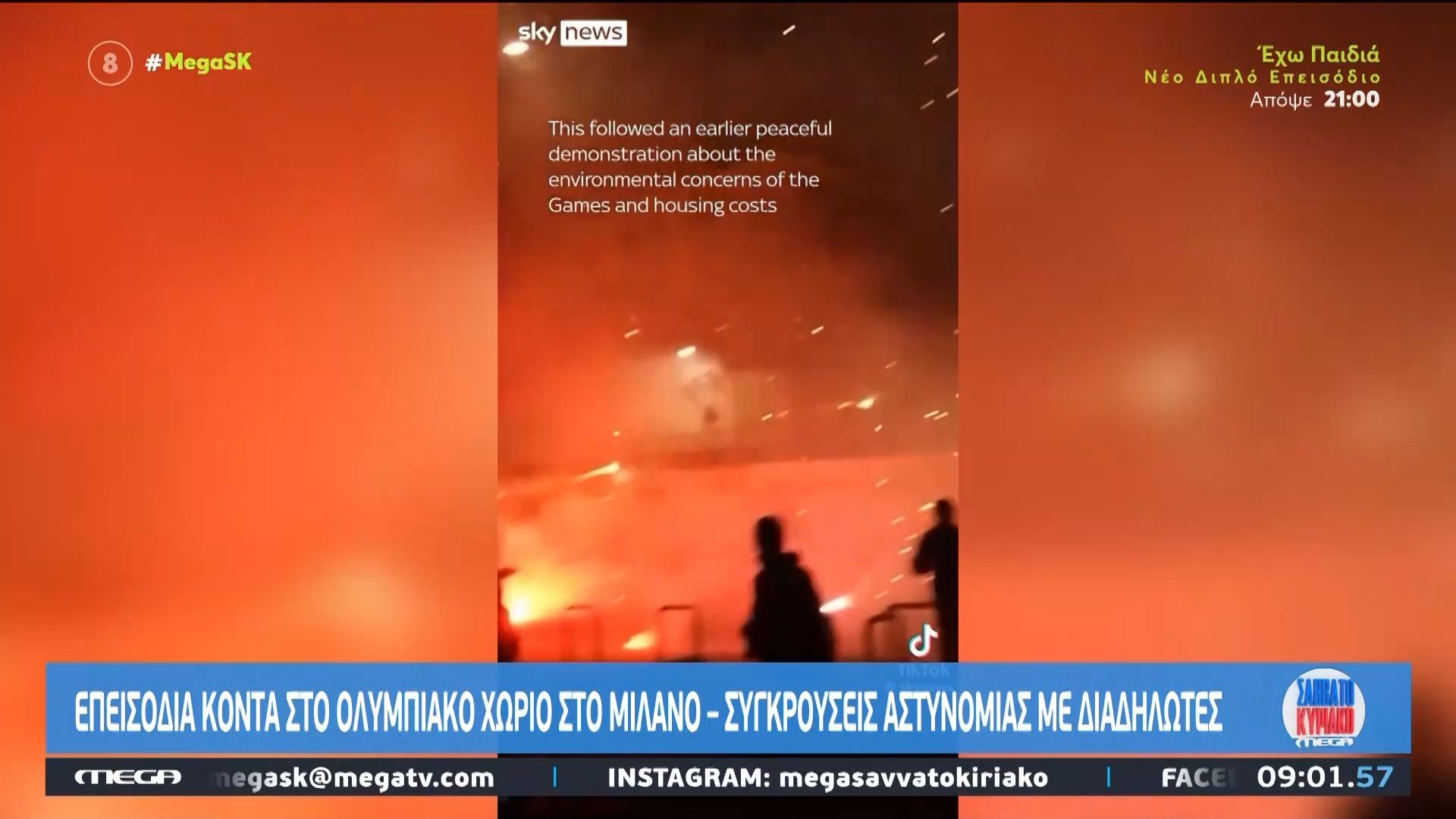 Συγκρούσεις ξέσπασαν κοντά στο Ολυμπιακό χωριό του Μιλάνου, όταν μια ειρηνική διαδήλωση 10.000 ατόμων μετατράπηκε σε επεισόδια με την αστυνομία. Οι διαδηλωτές διαμαρτύρονται ενάντια στους Ολυμπιακούς Αγώνες, υποστηρίζοντας ότι επιβαρύνουν την κοινωνία και το περιβάλλον.