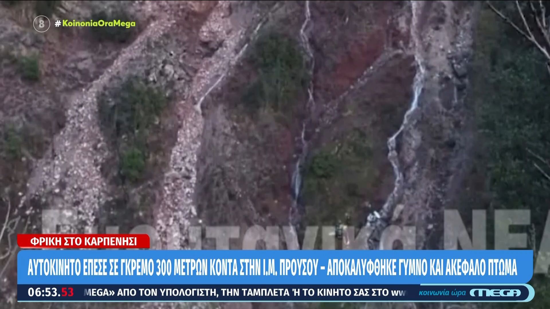 Αυτοκίνητο εξετράπη της πορείας του και έπεσε σε γκρεμό βάθους 300 μέτρων κοντά στην Ιερά Μονή Προυσού. Στο σημείο της τραγωδίας, οι αρχές εντόπισαν γυμνό και ακέφαλο πτώμα, γεγονός που προκαλεί σοκ στην τοπική κοινωνία.