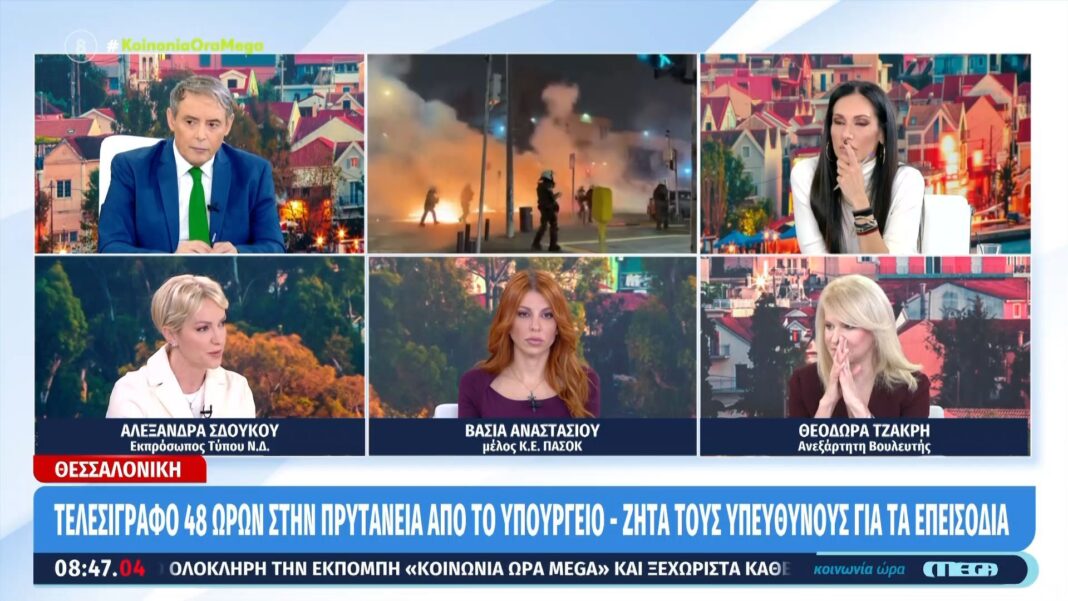 Στην εκπομπή «Κοινωνία Ώρα Mega», η Βάσια Αναστασίου εξέφρασε τις ανησυχίες της σχετικά με την πολιτική της κυβέρνησης, υποστηρίζοντας ότι τα επεισόδια στα δημόσια πανεπιστήμια εξυπηρετούν τα συμφέροντά της. Αναφερόμενη στη συνεχιζόμενη κρίση στην ανώτατη εκπαίδευση, τόνισε ότι η κυβέρνηση επιδιώκει να απαξιώσει τα δημόσια ιδρύματα.
