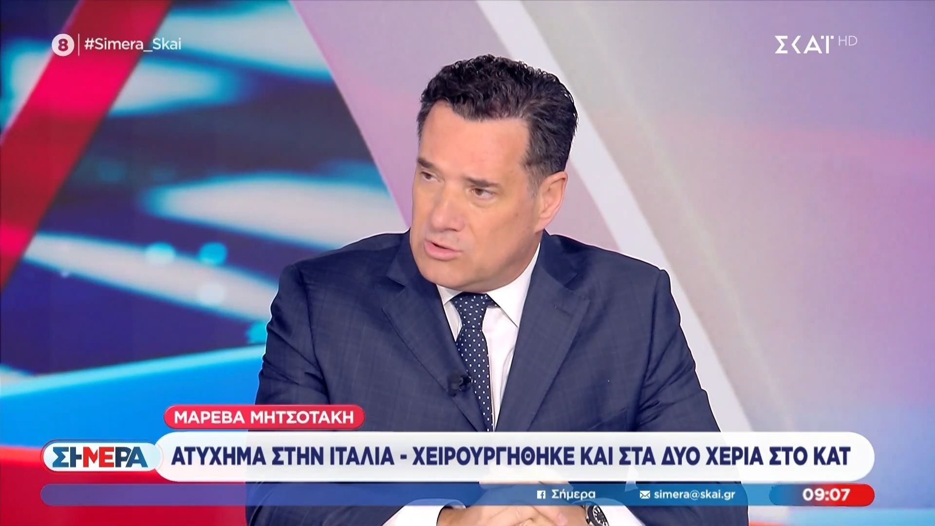 Η σύζυγος του πρωθυπουργού, Μαρέβα Μητσοτάκη, υποβλήθηκε σε χειρουργική επέμβαση στα χέρια της στο νοσοκομείο ΚΑΤ. Ο υπουργός Ανάπτυξης, Α. Γεωργιάδης, δήλωσε ότι η απόφαση της κυρίας Μητσοτάκη να επιλέξει το Εθνικό Σύστημα Υγείας (ΕΣΥ) είναι δείγμα εμπιστοσύνης στην ποιότητα των υπηρεσιών που προσφέρει.