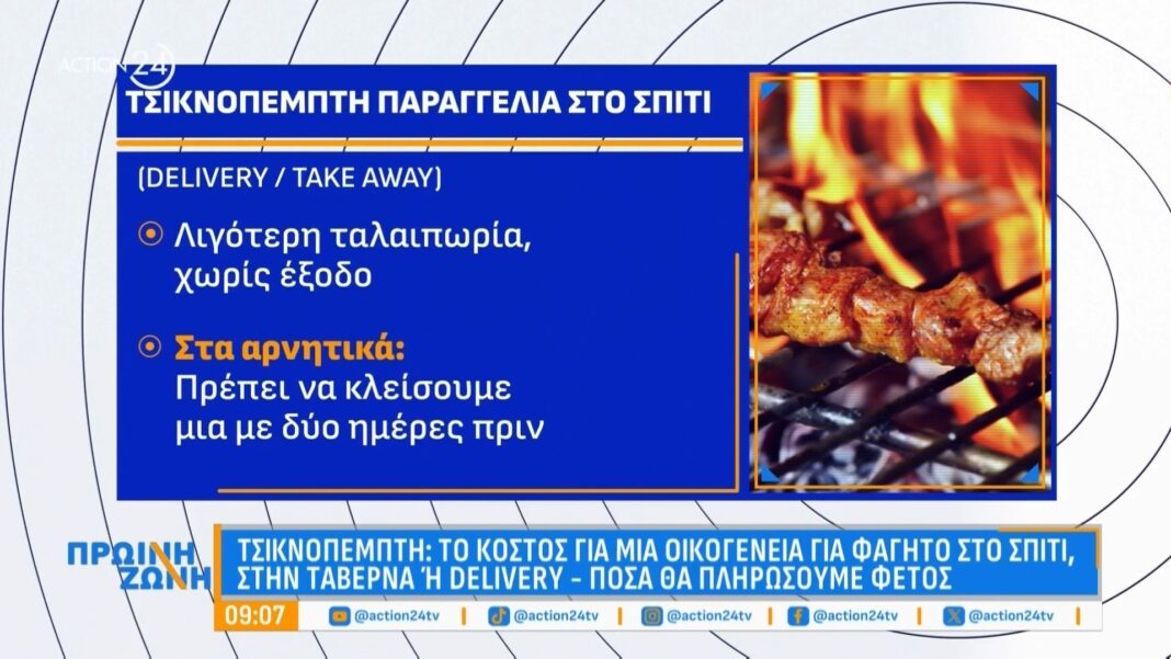 Ενόψει της Τσικνοπέμπτης, οι τιμές για φαγητό στο σπίτι, στις ταβέρνες και μέσω ντελίβερι παρουσιάζουν σημαντικές διακυμάνσεις. Οι καταναλωτές αναζητούν οικονομικές επιλογές, καθώς οι αυξήσεις στις τιμές των τροφίμων επηρεάζουν τις αποφάσεις τους.