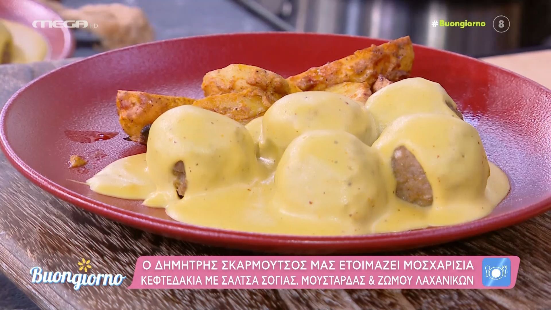 Μοσχαρίσια κεφτεδάκια με σάλτσα σόγιας, μουστάρδας και ζωμού λαχανικών από τον Δ. Σκαρμούτσο