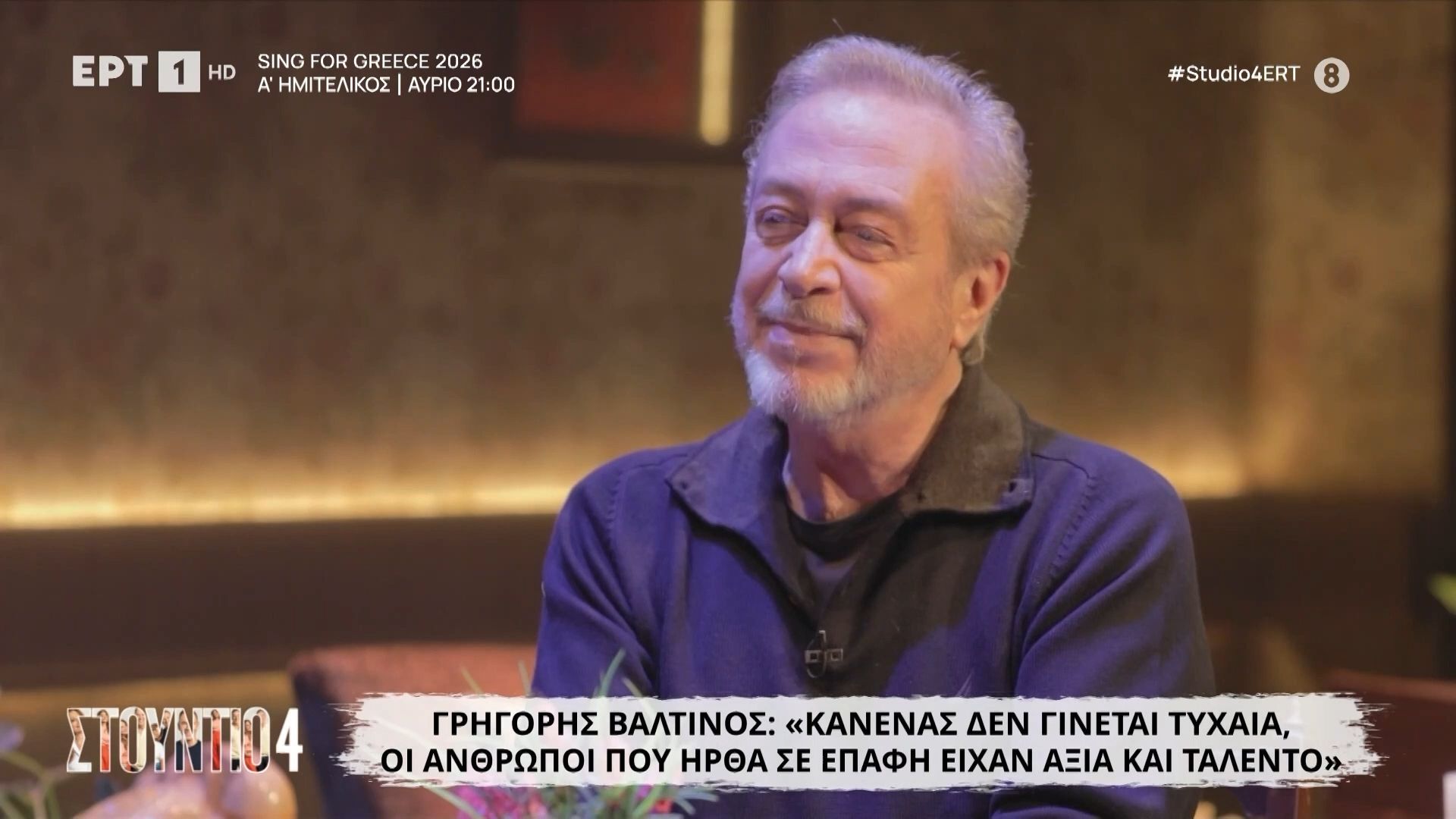 Ο Γρηγόρης Βαλτινός αναφέρεται στις σημαντικές στιγμές της ζωής του και την επαγγελματική του πορεία, τονίζοντας τη σημασία των ανθρώπων που έχει συναντήσει και των ταλέντων που τους διακρίνουν. Εκφράζει την πεποίθηση ότι κανείς δεν επιτυγχάνει τυχαία, αλλά μέσα από τις σωστές συνεργασίες και τη στήριξη από αξιόλογους ανθρώπους.