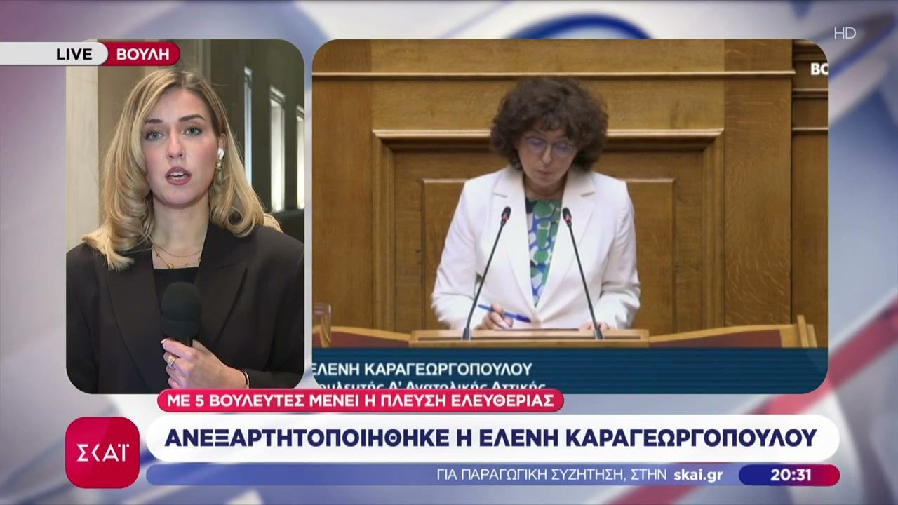 Η Ελένη Καραγεωργοπούλου ανακοίνωσε την ανεξαρτητοποίησή της από την Πλεύση Ελευθερίας, μειώνοντας τον αριθμό των βουλευτών του κόμματος σε πέντε. Η κίνηση αυτή έχει προκαλέσει ανησυχία σχετικά με την εσωτερική συνοχή και τις μελλοντικές πολιτικές στρατηγικές της παράταξης.