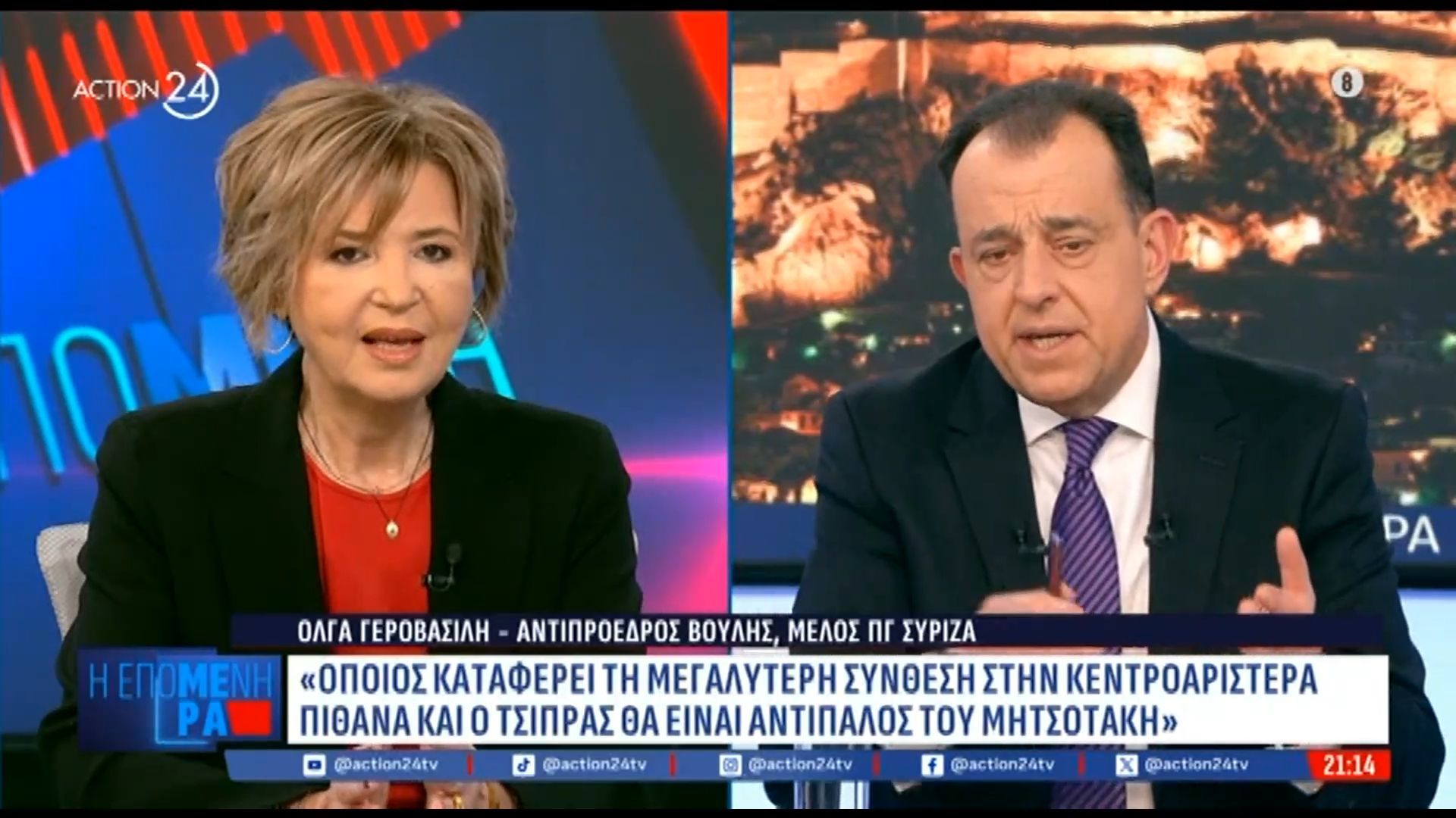 Η Όλγα Γεροβασίλη, σε πρόσφατη συνέντευξή της, αναφέρθηκε στον Αλέξη Τσίπρα, τονίζοντας ότι είναι ένας άνθρωπος με αξίες και ηθικές αρχές. Επισήμανε ότι οι εκλογές του 2019 αποτέλεσαν μια χαμένη ευκαιρία για τη χώρα, υπογραμμίζοντας τις προκλήσεις που αντιμετωπίζει η ελληνική πολιτική σκηνή.