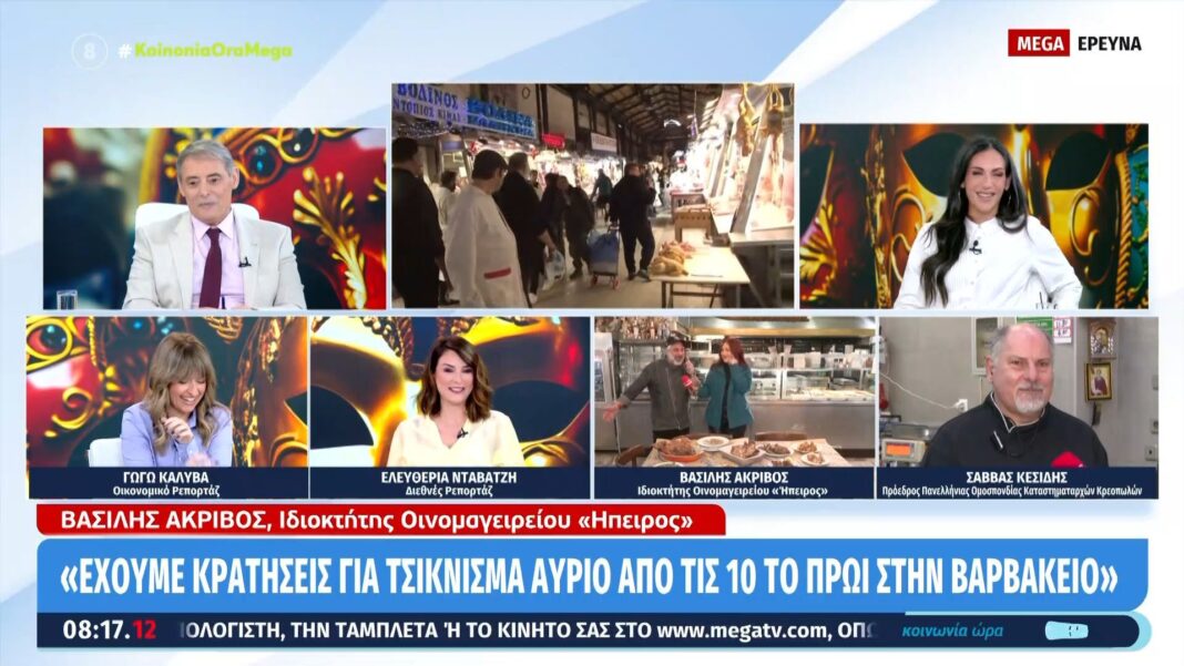Ο ιδιοκτήτης οινομαγειρείου στη Βαρβάκειο, Βασίλης Ακριβός, προέβη σε μια ενδιαφέρουσα δήλωση κατά τη διάρκεια της παρουσίας του στην εκπομπή «Κοινωνία Ώρα Mega». Αφού επαίνεσε τις κυρίες της εκπομπής, τόνισε την αξία της προσφοράς τους στην τηλεοπτική ενημέρωση.