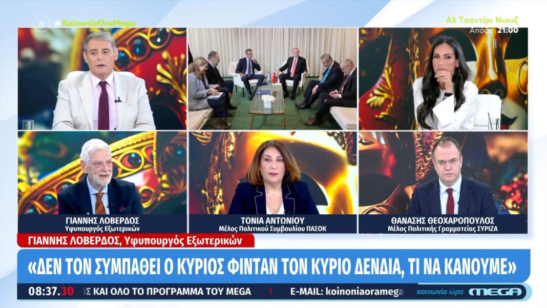 Ο Γιάννης Λοβέρδος σχολίασε τη σχέση του Φιντάν με τον Δένδια, επισημαίνοντας την έλλειψη συμπάθειας μεταξύ τους. Στη συζήτηση που διεξήχθη στην εκπομπή «Κοινωνία Ώρα Mega», οι συμμετέχοντες ανέλυσαν τις πολιτικές προεκτάσεις αυτού του γεγονότος και τις επιπτώσεις στην κυβερνητική σταθερότητα.