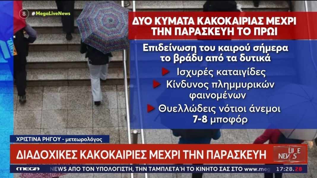 Καιρός: Διαδοχικά κύματα κακοκαιρίας μέχρι την Παρασκευή – Τσίκνισμα με καταιγίδες
