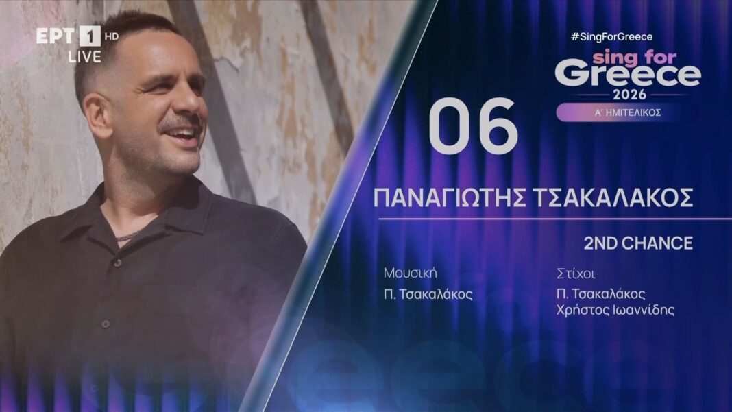 Ο Παναγιώτης Τσακαλάκος παρουσιάζει το τραγούδι του «2nd Chance» στον Α’ Ημιτελικό για την εκπροσώπηση της Ελλάδας στη Eurovision 2026. Το κομμάτι έχει γραφτεί από τον ίδιο και τον Χρήστο Ιωαννίδη, συνδυάζοντας σύγχρονες μουσικές επιρροές με ελληνικά στοιχεία.