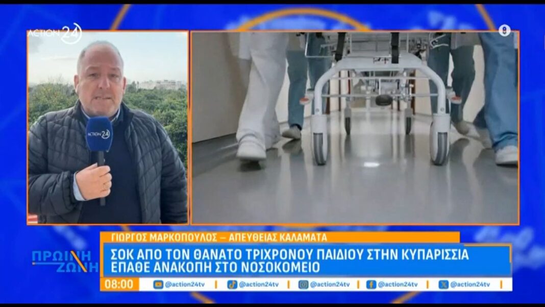 Σοκ έχει προκαλέσει στην τοπική κοινωνία της Κυπαρισσίας η είδηση του θανάτου ενός τρίχρονου παιδιού από ανακοπή. Το παιδί μεταφέρθηκε άμεσα στο νοσοκομείο, όπου οι γιατροί κατέβαλαν υπεράνθρωπες προσπάθειες για να το κρατήσουν στη ζωή, δυστυχώς όμως δεν τα κατάφεραν.