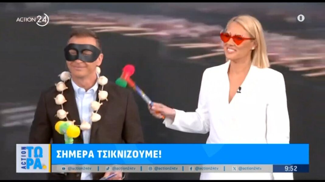 Γ. Γρηγοριάδης: «Ντύθηκα αινιγματική σκορδαλιά σήμερα» – Αποκριάτικες καλημέρες από την παρέα του «Action Τώρα»