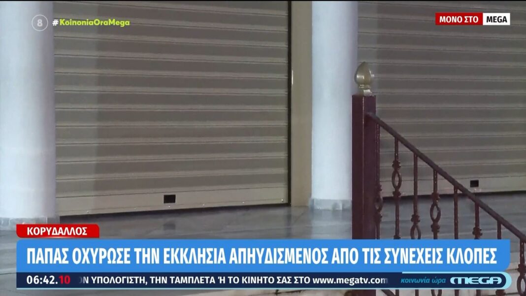 Παπάς στον Κορυδαλλό αποφάσισε να προστατεύσει την εκκλησία του από τις συνεχείς κλοπές, εγκαθιστώντας ρολά στα παράθυρα και τις πόρτες. Αυτή είναι η πρώτη εκκλησία στη χώρα που προχωρά σε μια τέτοια κίνηση, υπογραμμίζοντας τη σοβαρότητα του προβλήματος της κλοπής και της ασφάλειας των θρησκευτικών χώρων.